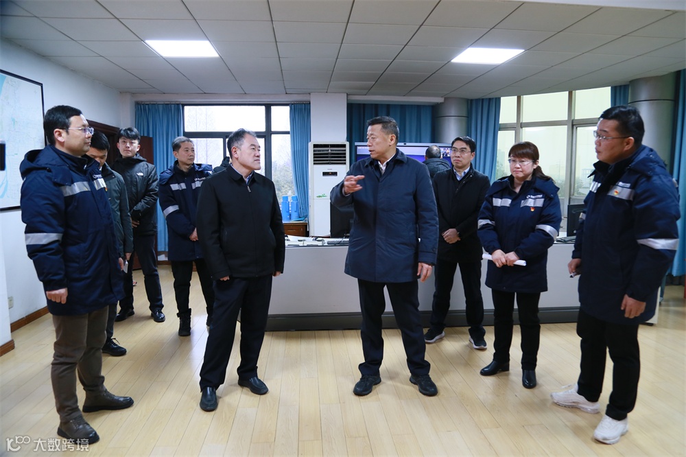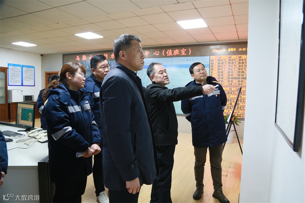 葛斌一行来到马鞍山首创水务调度中心,实地查看生产运行监控与调度系统,详细了解水厂供水能力、水压调控运行、水质监测安全以及春节期间供水保障和