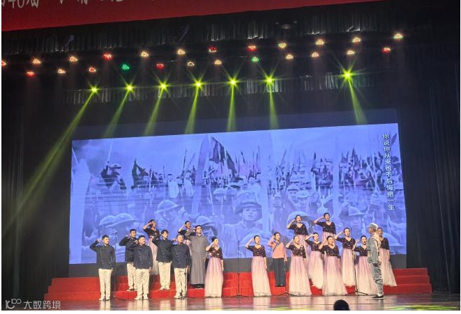 活动当晚,市人民会堂座无虚席。公司合唱队伍精神饱满,先后精彩演绎了《时光剪影》与《爱国时空》两首不同风格歌曲。《时光剪影》用悠扬歌声将岁月故事娓娓道来,让观众沉浸在往昔回忆与未来憧憬之中,展现出细腻情感表达与出色艺术表现力;《爱国时空》则以慷慨激昂的旋律、振奋人心的朗诵,表现出对祖国的忠诚和热爱,引发了全场观众的强烈共鸣,现场掌声雷动。