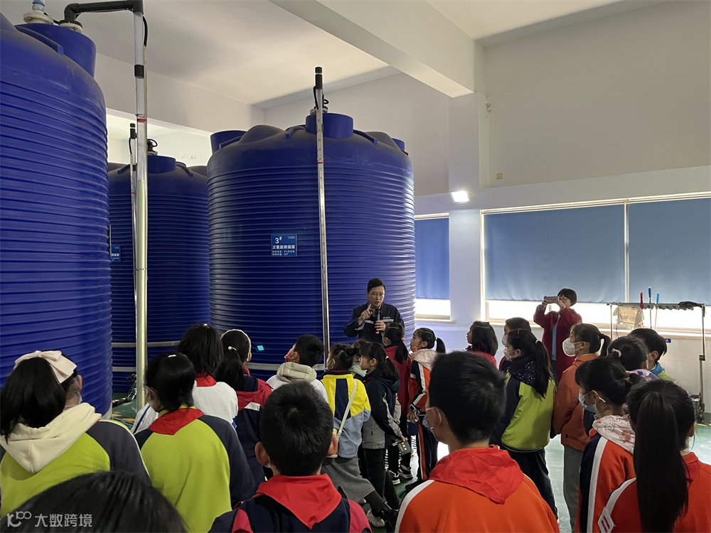 在送水泵房调度室,工作人员指着屏幕向大家介绍道:“国家生活饮用水卫生标准限值1NTU,目前实时水质浊度远远低于该值,是非常优质的。”在参观过程中,同学们认真倾听,不时举手提问与水厂工作人员热烈交流,个个热情高涨。看到水厂的生产设备、供水压力、流量等数据都通过电脑进行精确操控,同学们对自来水厂现代化的运行管理和厂区的美丽景色表示惊叹。