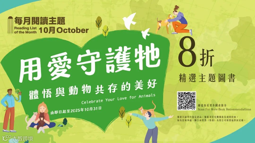 即日起至10月31日,聯合出版集團旗下聯合新零售運營的全港三聯書店、中華書局及商務印書館門市,以及全港最具規模的文化電商平台「一本」,舉行「用愛守護牠——體悟與動物共存的美好」主題書展,精選超過200種主題選書和相關文創產品展售,並於8間指定門市作主題展覽。讓我們透過本月選書,學懂如何與動物和諧共處,深入了解動物保護所面對的挑戰,並從中認識生命教育,明白生命的可貴之處。