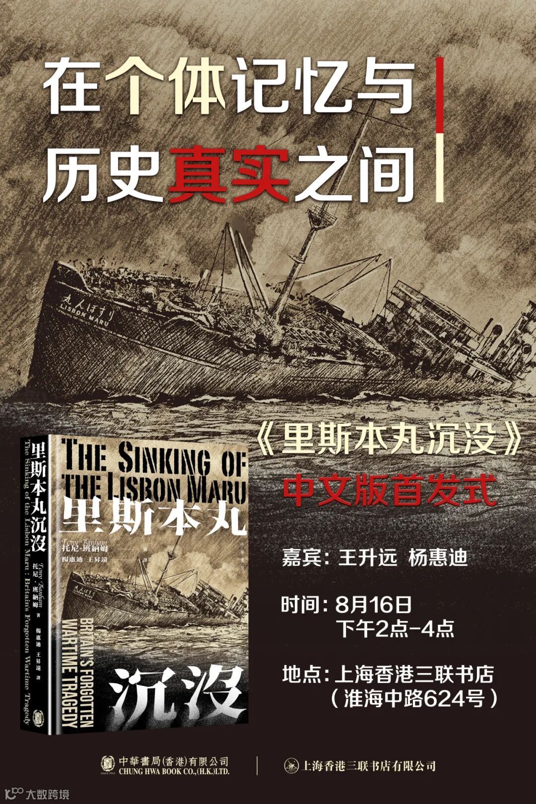 居港多年的英國歷史學者托尼·班納姆研究該片原型——「里斯本丸」沉沒事件多年,他的著作The Sinking of the Lisbon Maru : Britain’s Forgotten Wartime Tragedy是對此事件的開創性研究。香港中華書局邀請復旦大學博士楊惠迪和上海交通大學教授王昇遠翻譯,並於今年7月出版該書首個中譯本《里斯本丸沉沒》,以紀念中國人民抗日戰爭暨世界反法西斯戰爭勝利80周年。