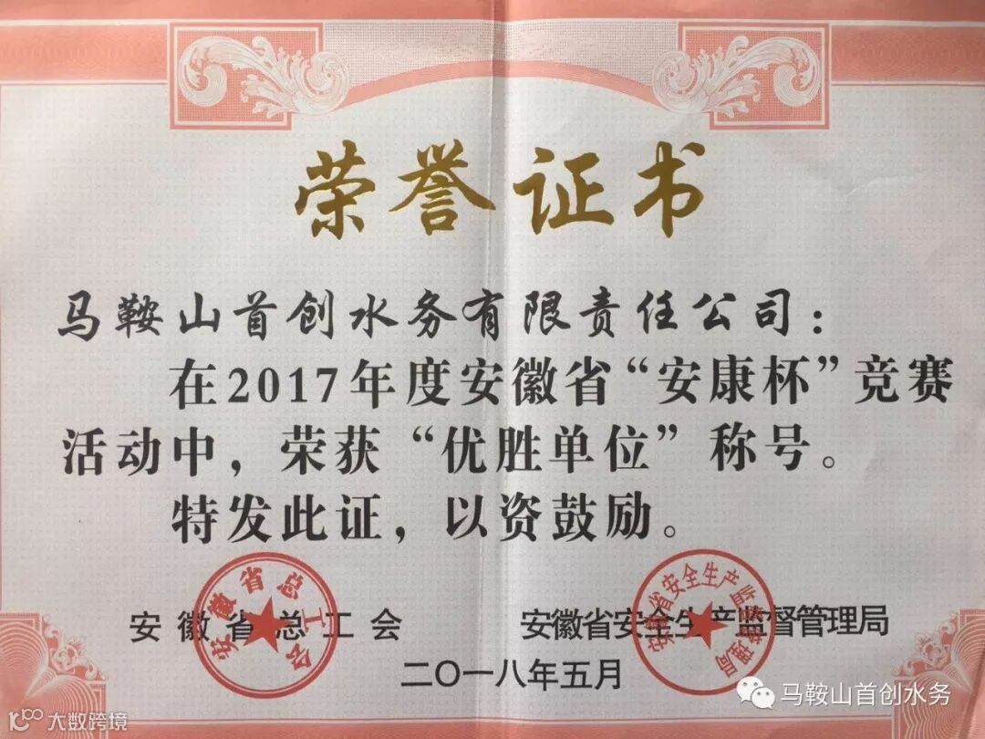近日,公司荣获安徽省总工会、安徽省安全生产监督管理局颁发的“2017年度安徽省‘安康杯’竞赛优胜单位”称号。