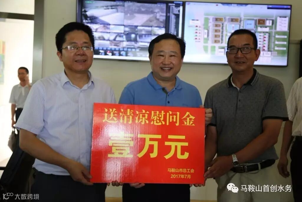 为有效预防、控制高温中暑和各类安全生产事故的发生,保护广大职工身体健康,确保安全生产,7月18日下午,马鞍山市市委常委、副市长季翔率市政府、市总工会相关人员一行来到首创水务公司开展“关注安全、关爱职工”夏季送清凉活动。首创股份执行副总经理、东南大区总经理崔宝军,江东控股集团副总经理张有华,东南大区相关领导,马鞍山首创总经理杨邦华及经营班子成员等陪同。
