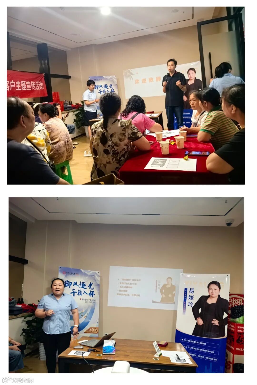 活动伊始,分别由银行方和中支银保部领导致欢迎辞,对莅临现场的嘉宾朋友表达感谢和诚挚的欢迎,接着由本场活动的金龙四星会员(易娅玲)做个人介绍,以及公司介绍、服务介绍等,分别向客户们介绍了公司致力于卓越服务,铸就价值的核心理念和坚持“以人为本,以客为尊”的服务宗旨。