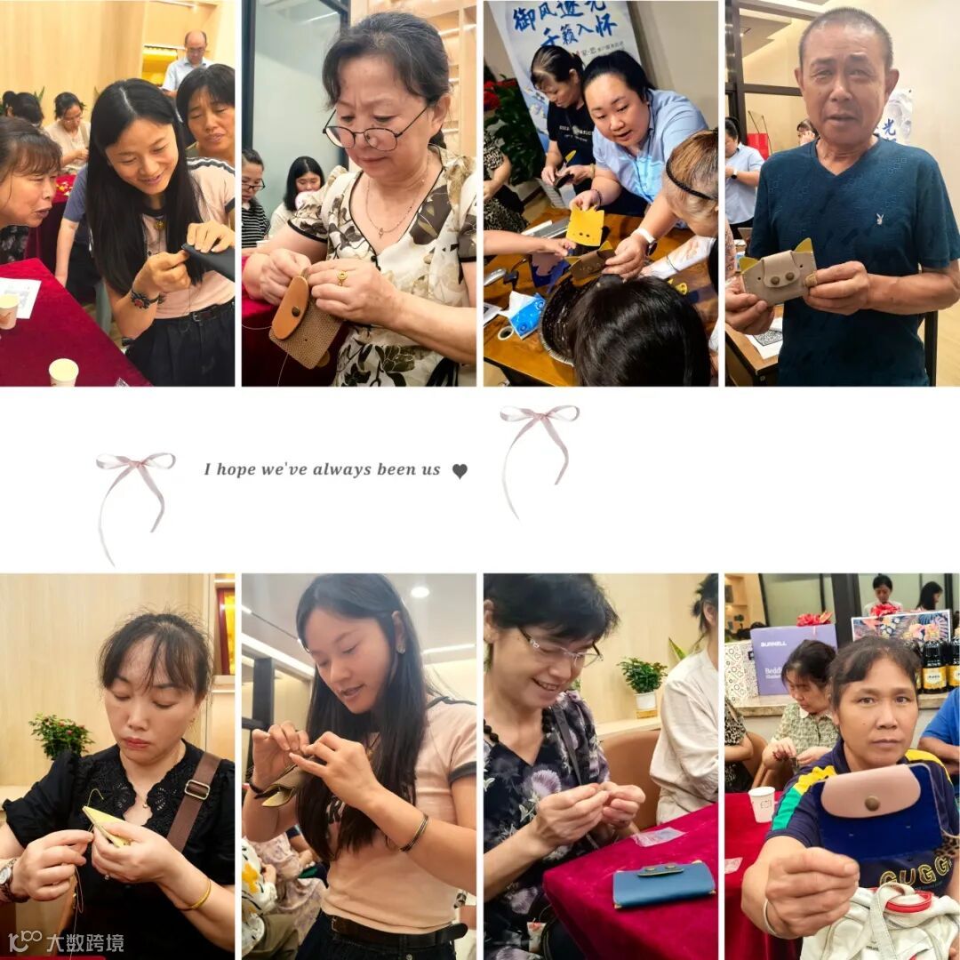 活动现场,提前为每位客户精心准备了手工卡包DIY工具,并由专业的手工缝制皮具老师现场教学,大家纷纷拿起手中的针线和皮革,开启了沉浸式的卡包DIY手工体验,手工老师一边演示一边解说:“卡包的缝线需‘双针回环’,每一针都要拉紧,这样缝出的卡包才经久耐用,就像保险对家庭的守护,经得起时间的考验。”