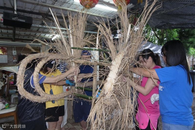 火龍的製作講究,香港大坑坊眾福利會的火龍組每年統籌舞火龍之工作,下設龍頭、龍尾、龍身、龍珠、音樂及紗燈等小組分工負責。每年新紮作的火龍長67米,由龍頭、龍尾及31節龍身組成。龍頭及龍尾的骨架用籐枝屈成,龍身是一根粗2厘米的繩纜,下接竹竿,再用鐵線於籐架及繩纜上紮上一層厚厚的珍珠草。