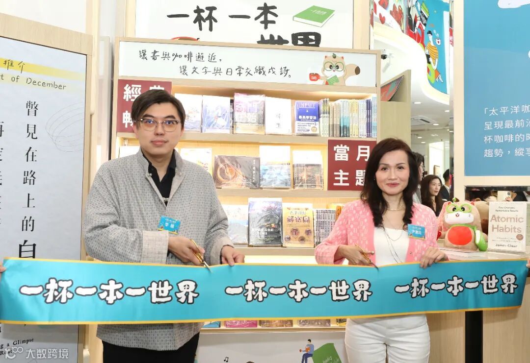 圖 | 華潤創業副總裁、Pacific Coffee董事長李楠(左)與聯合新零售董事總經理尹惠玲(右)為「一本讀書會×太平洋咖啡聯合書架」剪綵