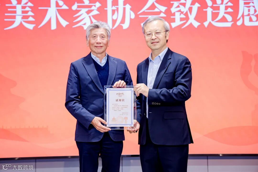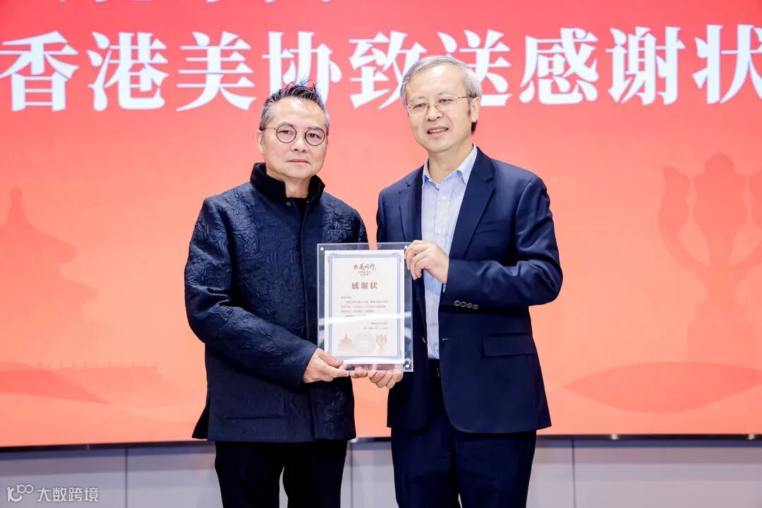 圖 | 紫荊文化集團總經理文宏武(右)分別向北京美協、香港美協致送感謝狀