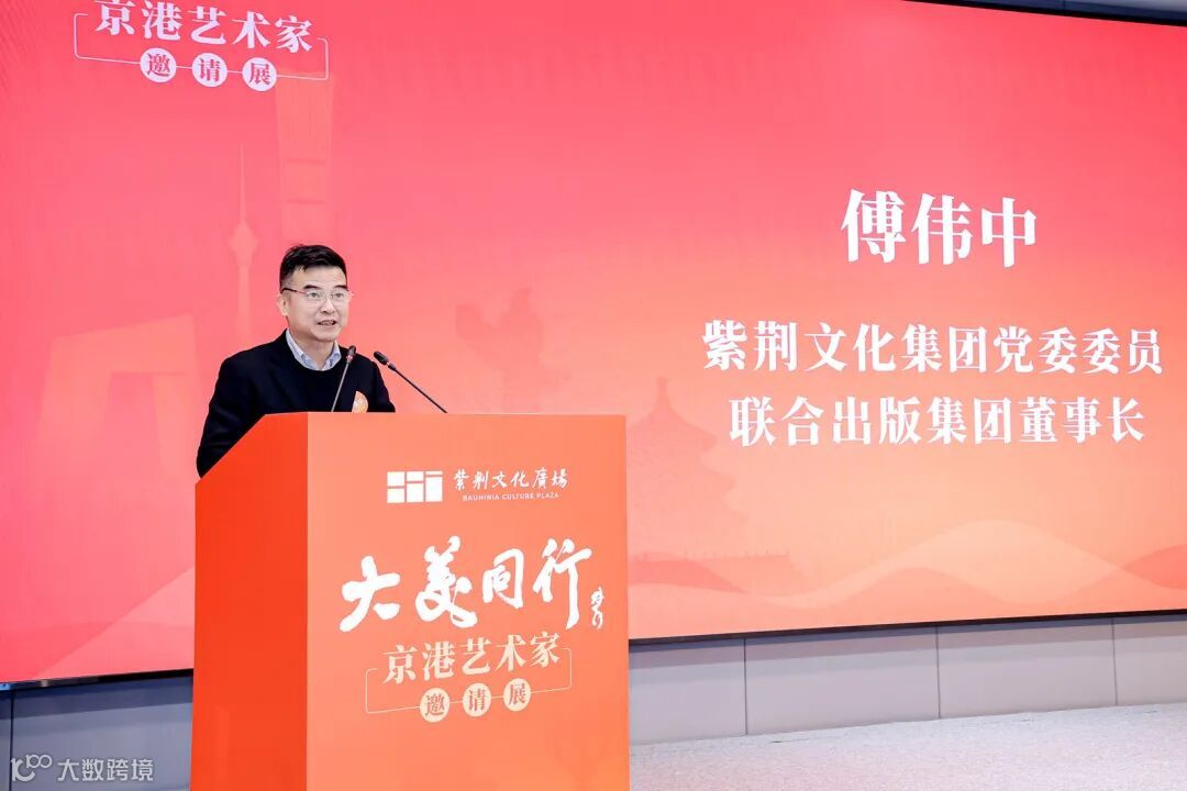 開幕式上,聯合出版集團董事長傅偉中致歡迎辭,對各位嘉賓的到來表示熱烈歡迎和衷心感謝。他表示,「大美同行——京港藝術家邀請展」是紫荊文化美術館開館的首場展覽,也是紫荊文化廣場開園以來成功落地的一個重要文化項目,期待展覽的成功舉辦能夠為京港文化藝術界的全方位交流合作開啟嶄新的篇章。