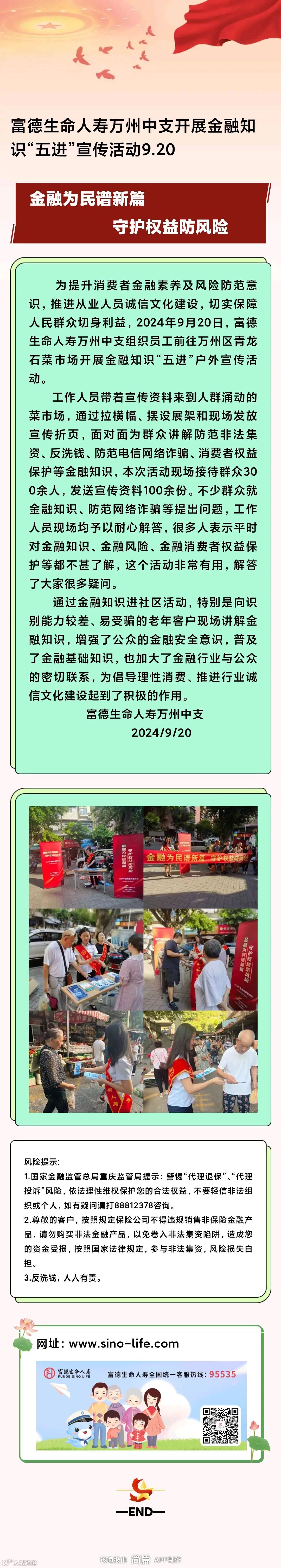 金融教育宣传月|富德生命人寿万州中支开展金融知识五进宣传活动(二)