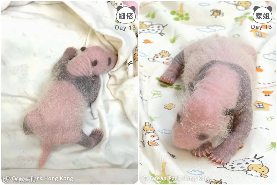 香港海洋公園的熊貓BB姐弟逐漸長大啦!不僅體重增加了一倍多,身體也都漸漸「上色」,估計等牠們滿月的時候,就會變成真正的「黑白熊」啦!