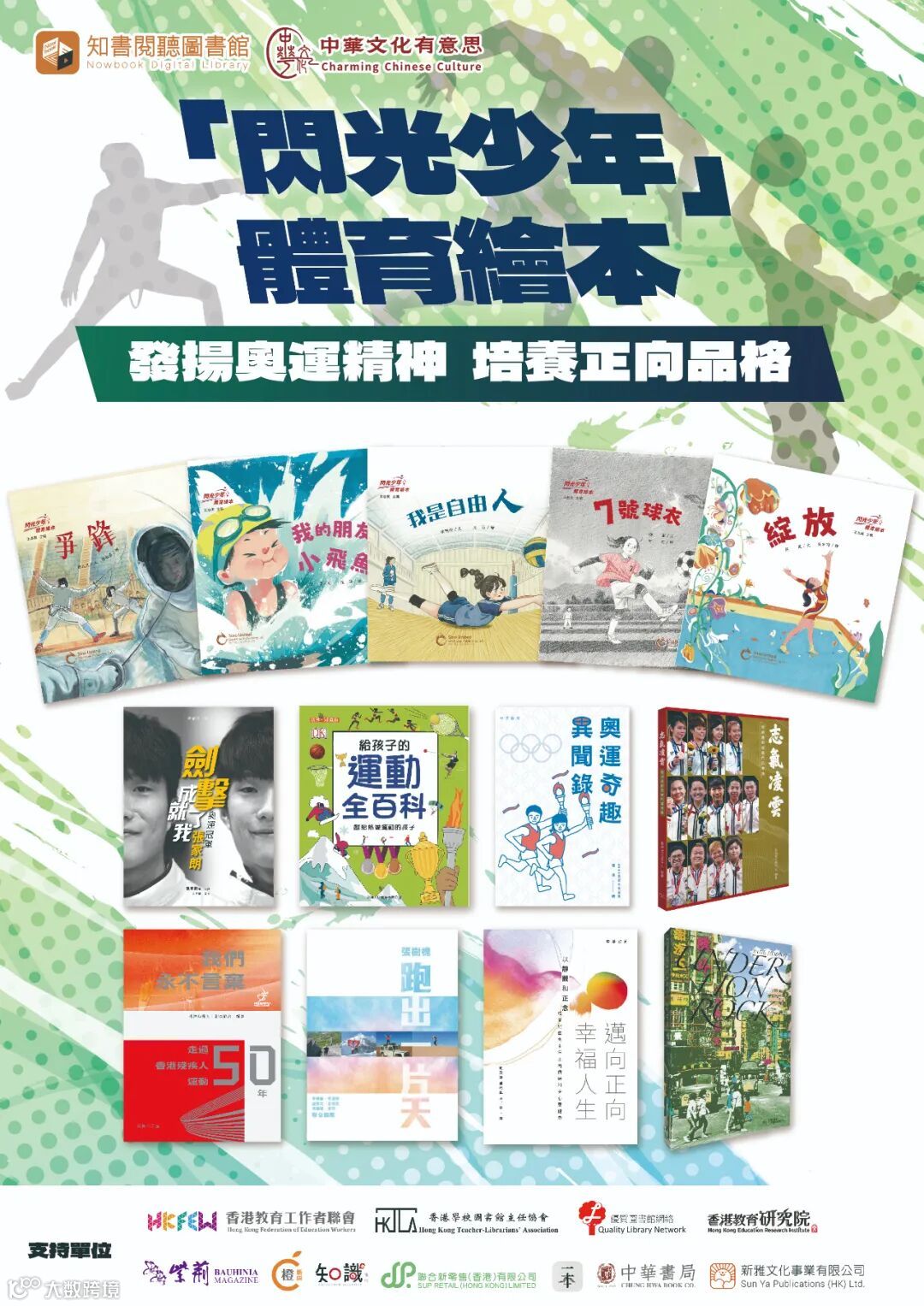 「知書閱聽圖書館」特別推出了奧運精神體育繪本系列,一套五本,透過這些體育少年的故事,引導青少年勇敢面對挑戰、增強團隊合作精神,培養勇敢和堅韌的品格,為未來的挑戰做好準備。