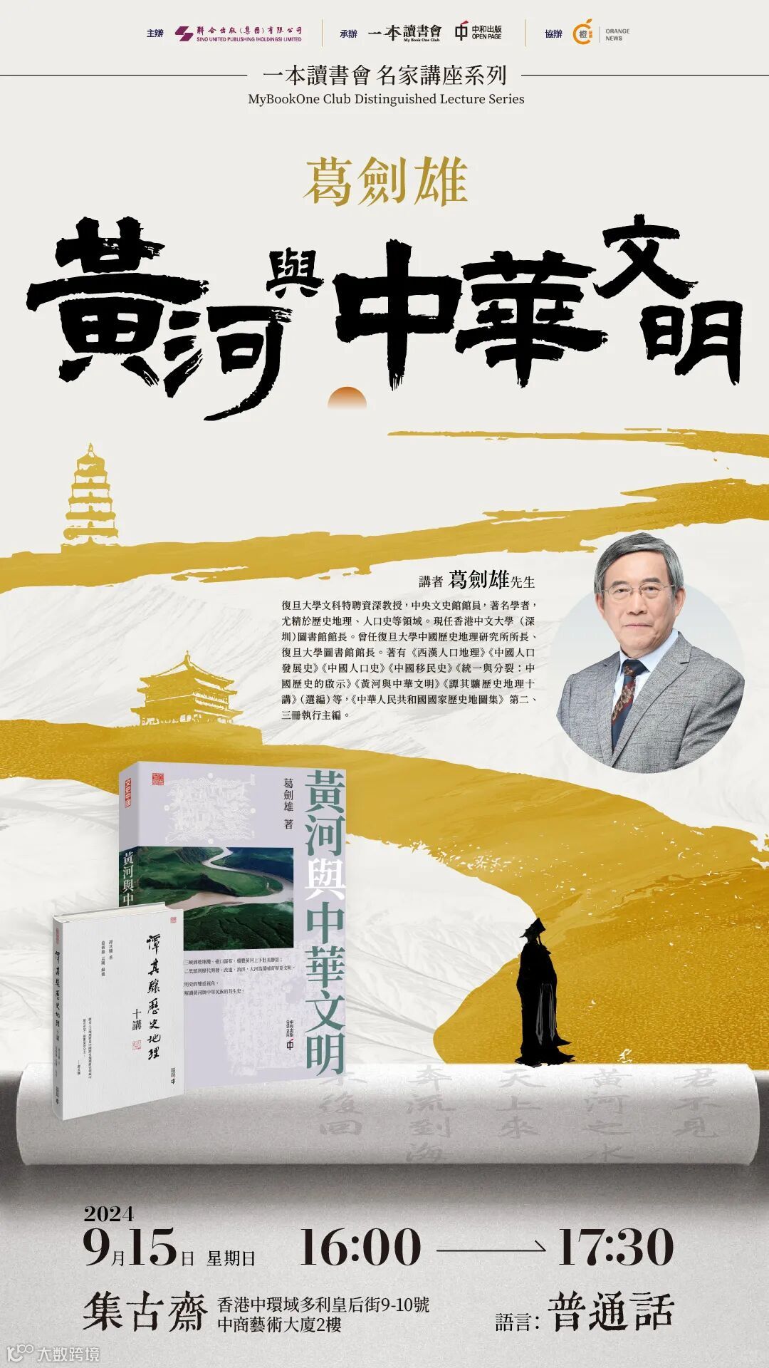 9月15日,葛劍雄教授將做客「一本讀書會」名家講座分享「黃河與中華文明」,透過地理史與文明史的雙重視角,為讀者深度解讀黃河與中華民族的共生史。