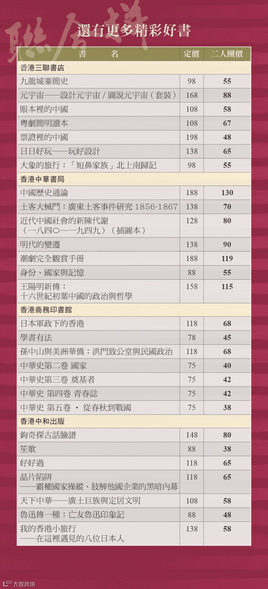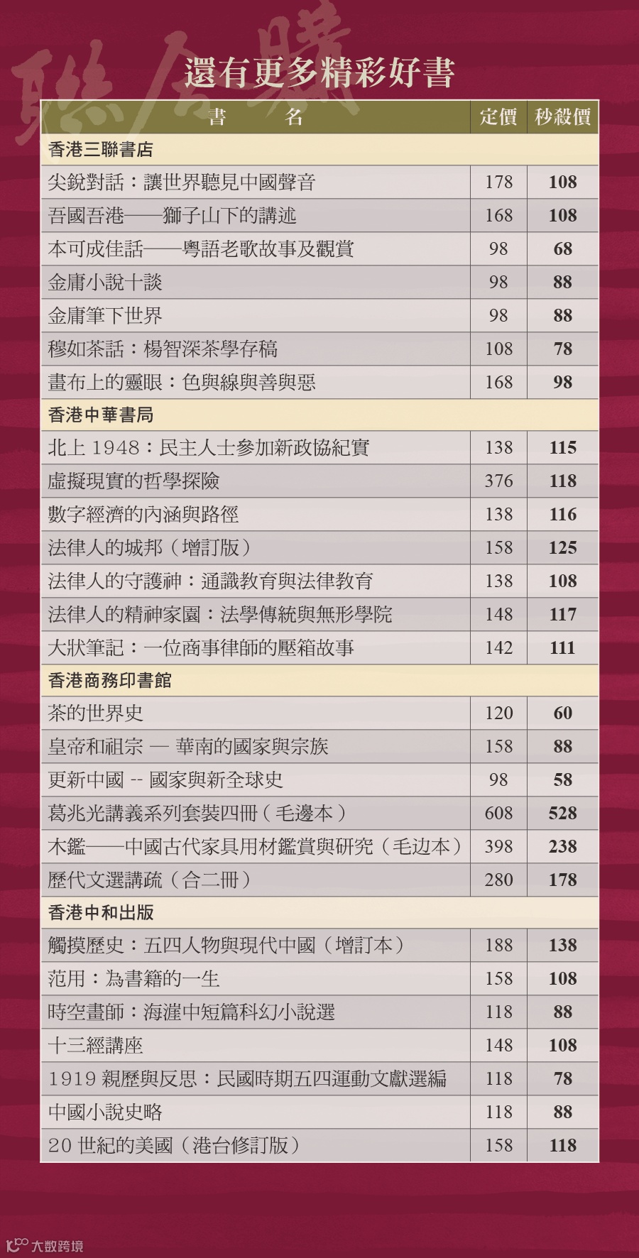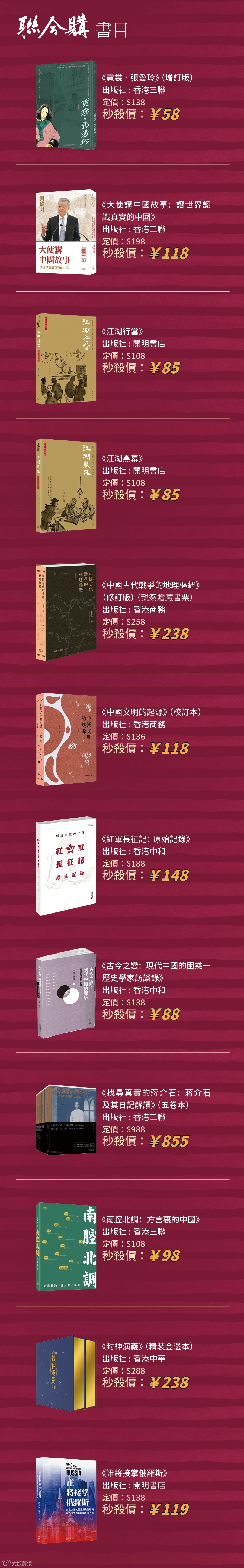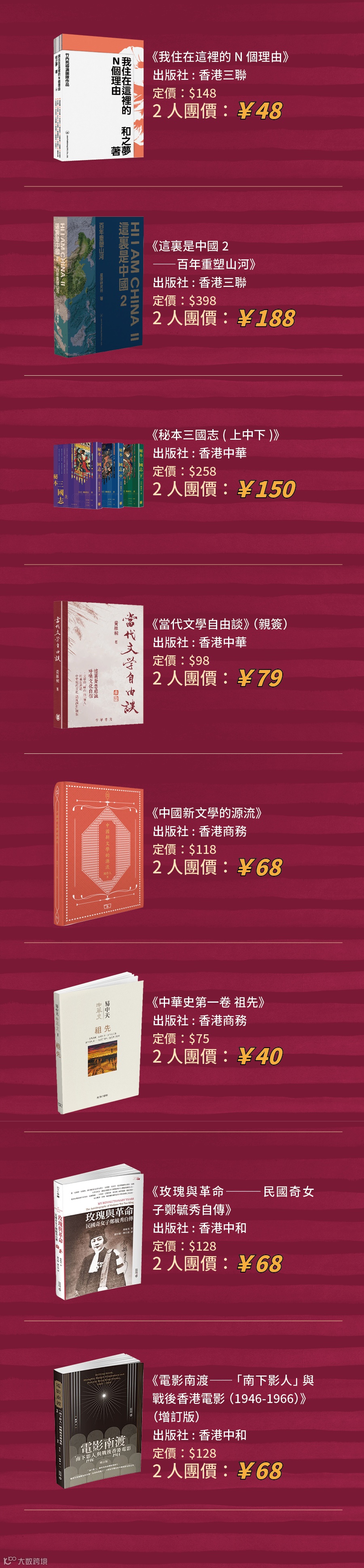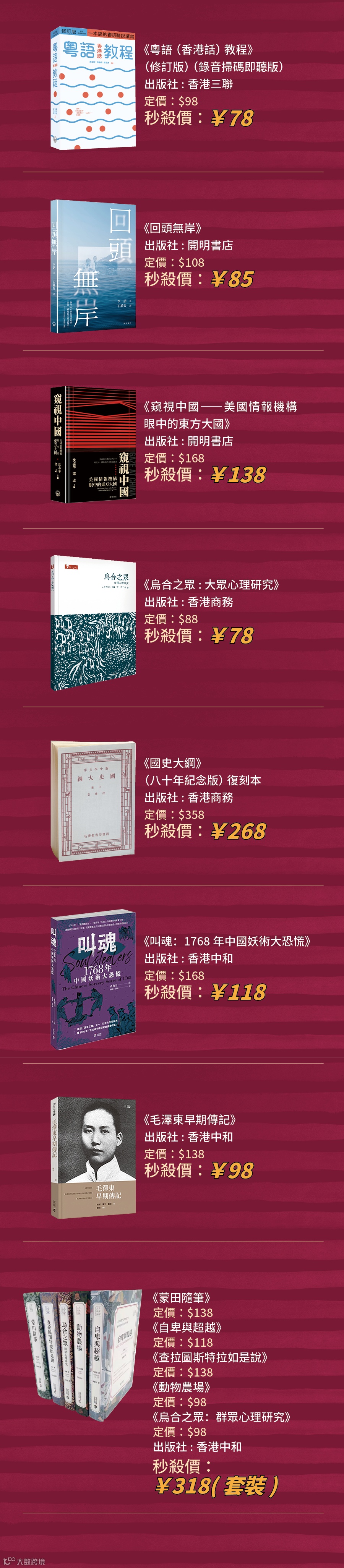 自2024年開始,香港特別行政區政府把每年4月23日的世界閱讀日定為「香港全民閱讀日」。4月18日—24日期間,聯合出版集團旗下香港三聯書店、香港中華書局、香港商務印書館、香港中和出版四家出版社,聯合推出「423讀書日 | 聯合讀·聯合購·聯合拼」系列活動,精選一批好書,以優惠購、拼團、直播的方式,邀你共讀!