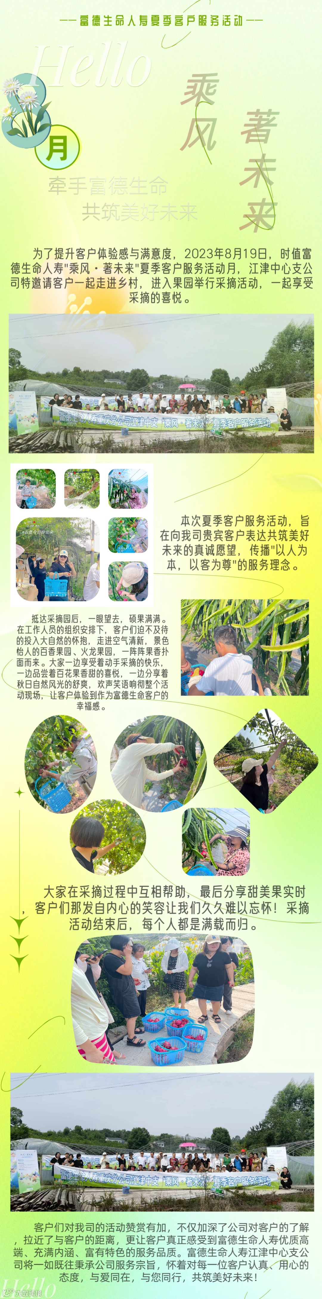牵手富德生命,共筑美好未来——富德生命人寿重庆分公司江津中支举办“乘风·著未来”夏季乡村采摘活动