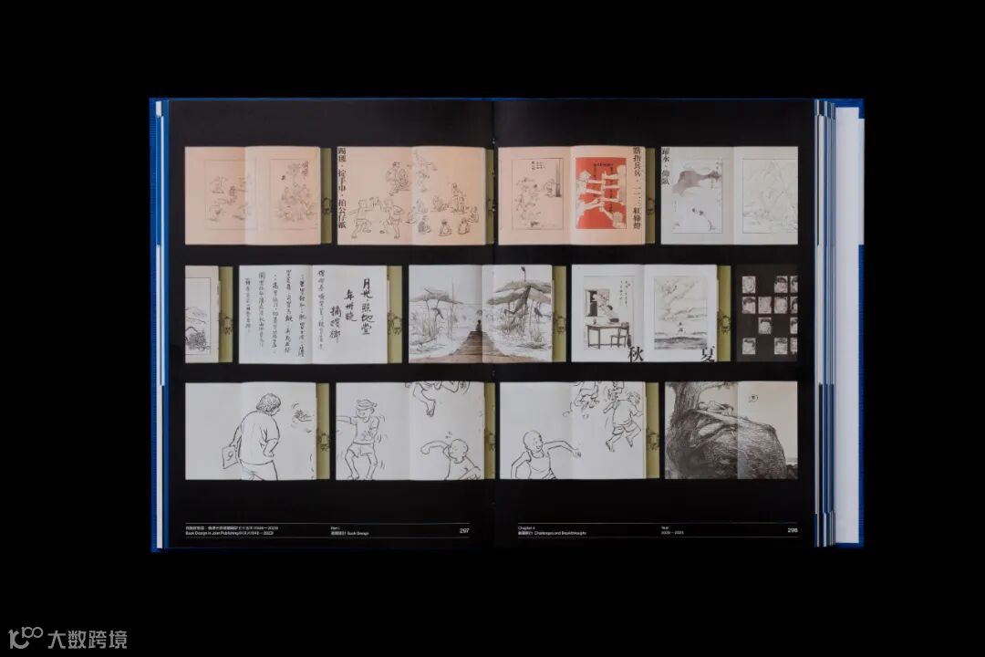 本書的設計像是一間博物館的打開。書中包含670種品種,其中包括1990年代以前的許多孤本。為了展示實體書的質感,我們將書籍全部重新拍攝。拍攝是逐批進行的,隨着選書不斷增加,有時因光線差異、紙張反光或角度不統一,常常需要補拍。實際拍攝的2000多張圖中,經過精修,最終保留書中的有1300張。這本書的版式中,書籍是陳列的展品,時間是閱讀的線索,文字是設計的注解。上編大塊黑色的書影背景給人一種走入陳列室的空間感,下編背景由黑色轉為白色,產生轉場的區分,帶進一個活躍的群體空間。