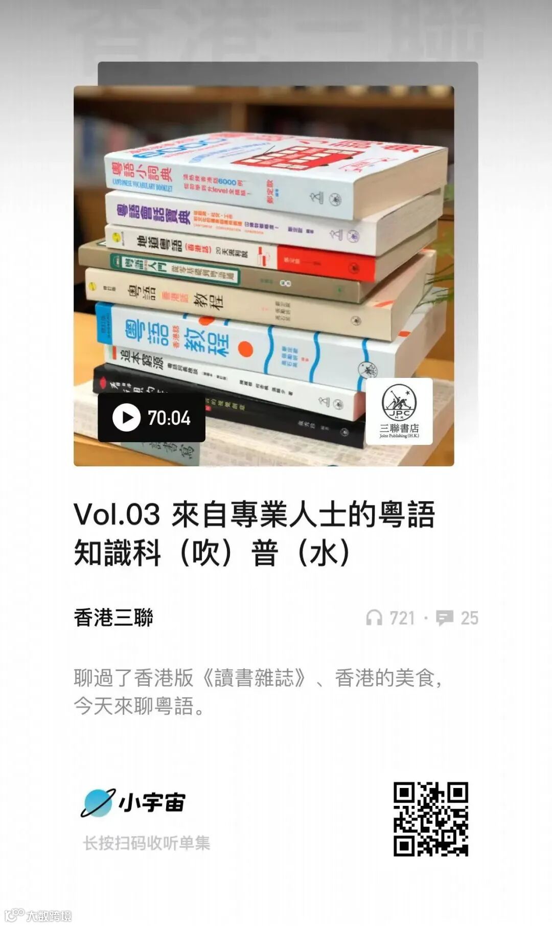 去年,香港三聯書店推出首檔播客節目「古典與流行」系列,與大家聊有關唐代的日常生活以及古今流行文化,甚是精彩。最近又邀請社內語言編輯部資深編輯海檳老師做了一期播客,為大家分享關於粵語的知識和趣事。