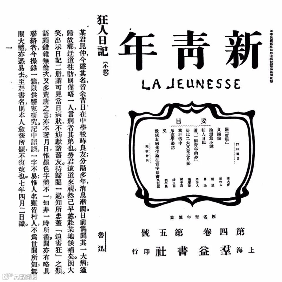 圖 | 1918年魯迅在《新青年》雜誌上發表首篇白話文短篇作品《狂人日記》