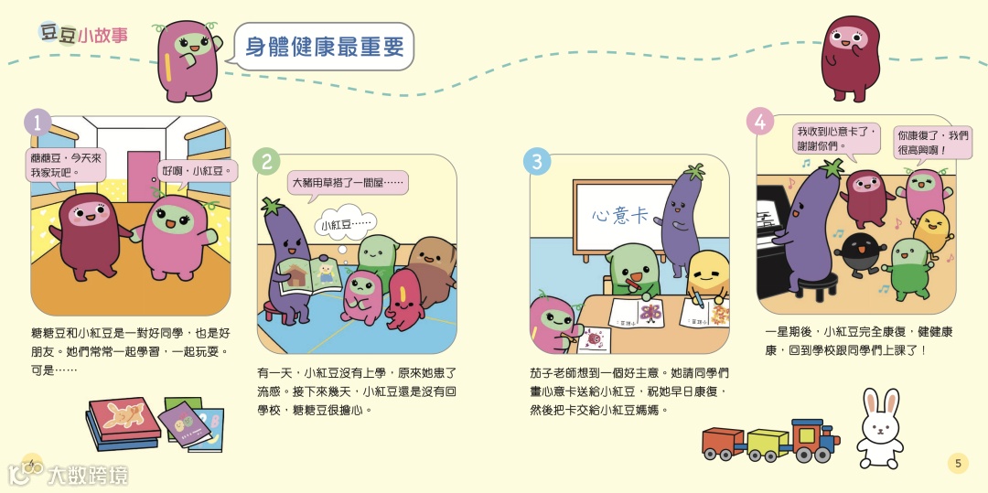 每冊以「豆豆小故事」引入,先給孩子說說關於保持身體健康的故事,熱熱身。