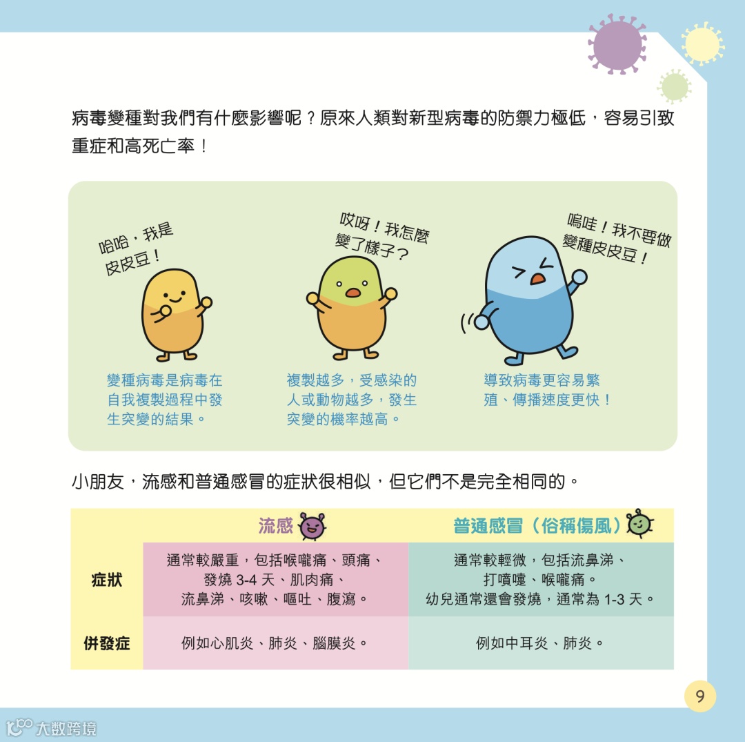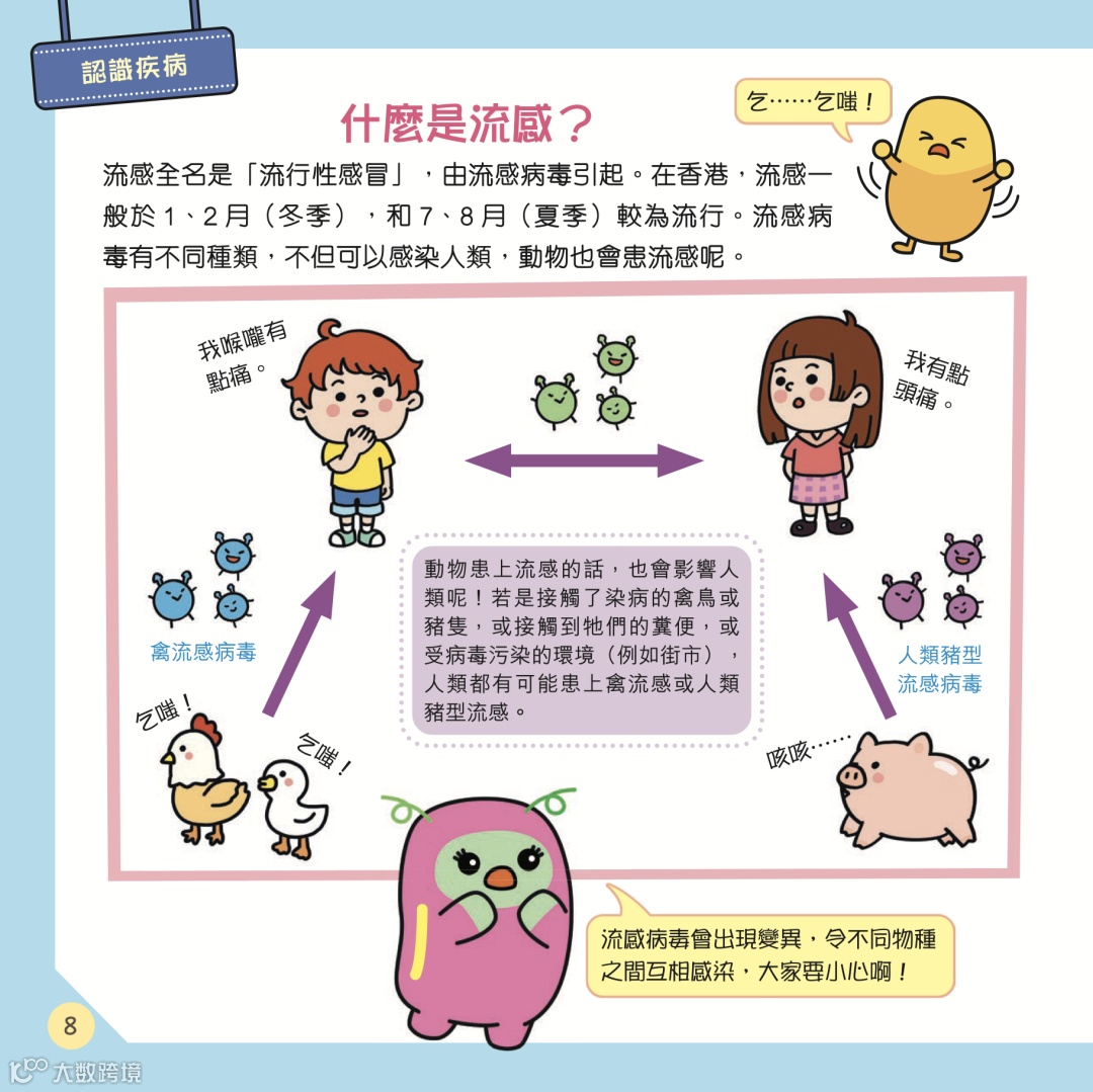 肺炎、流感、手足口病都是常見疾病,特別是手足口病,更是兒童常見疾病。教導孩子建立衞生意識,有助他們遠離這些疾病。本書從孩子的角度出發,除了由可愛的豆豆們介紹一個個豐富而且程度適中的健康常識外,也透過走迷宮、塗顏色、找找看等趣味元素,將知識融入遊戲中,讓孩子輕鬆學習。