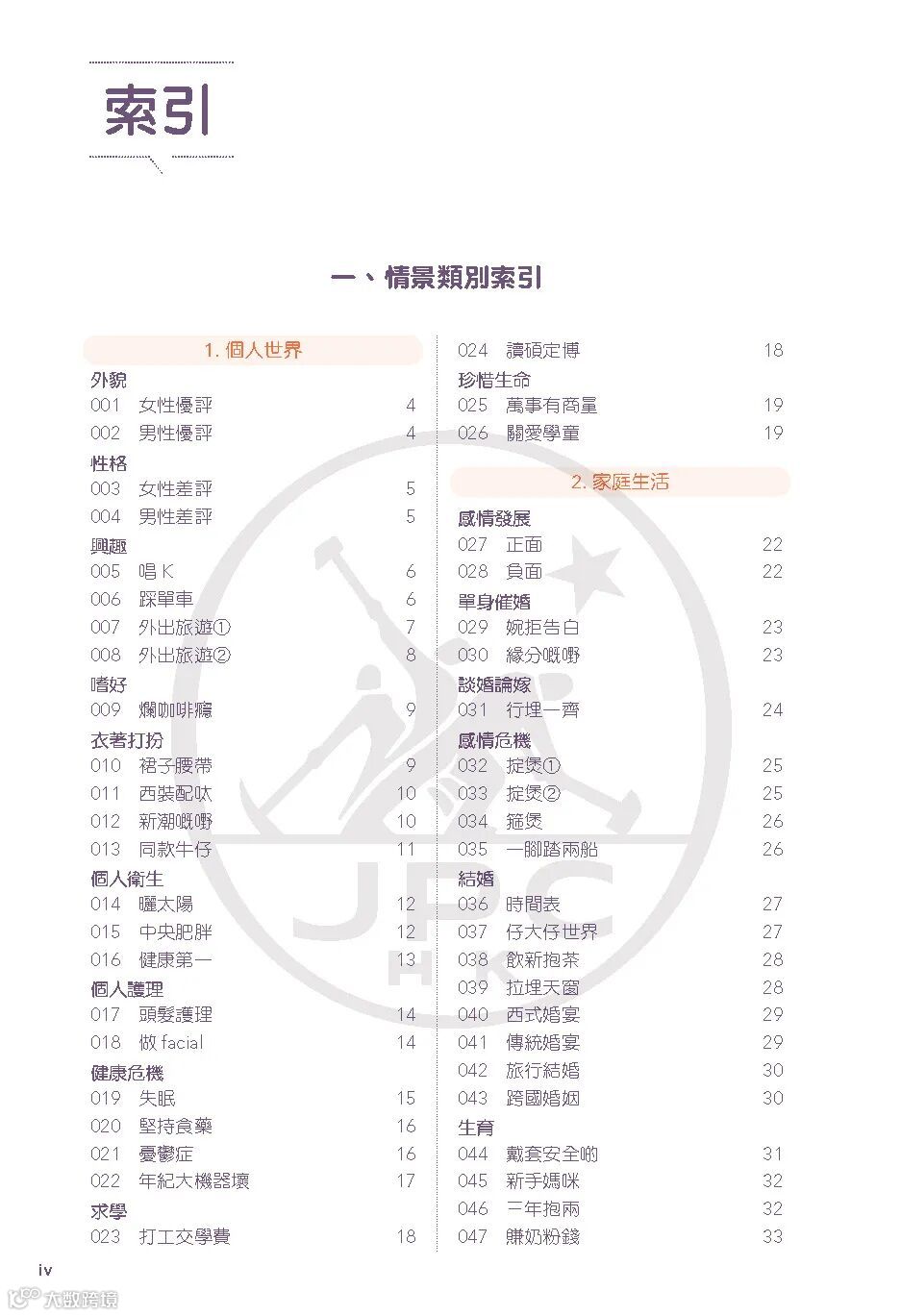 以社會現實生活的事件為依據,包含家庭、社交、商業、工作、風俗等多個場景,便於讀者即時套用。
