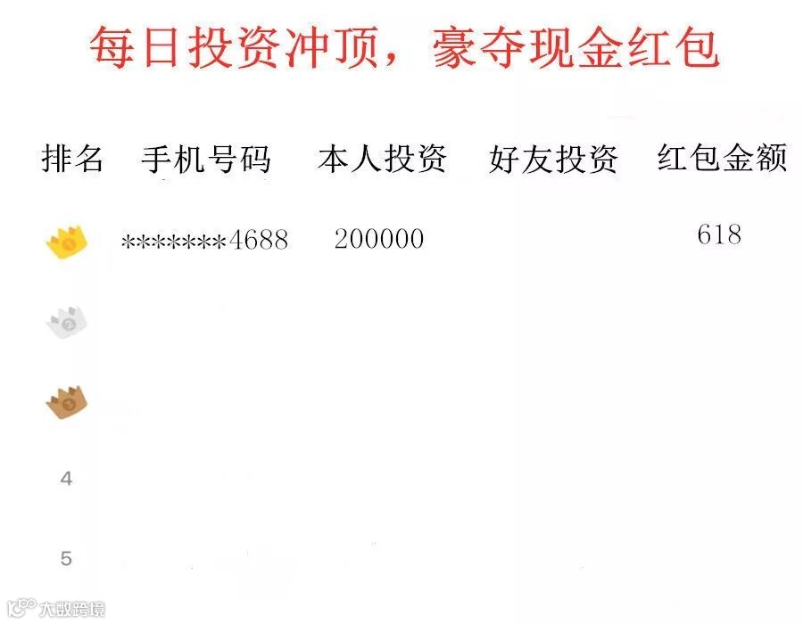 第二、三、四、五名,因未达到规则二中各名次对应的最低投资额,故空缺。