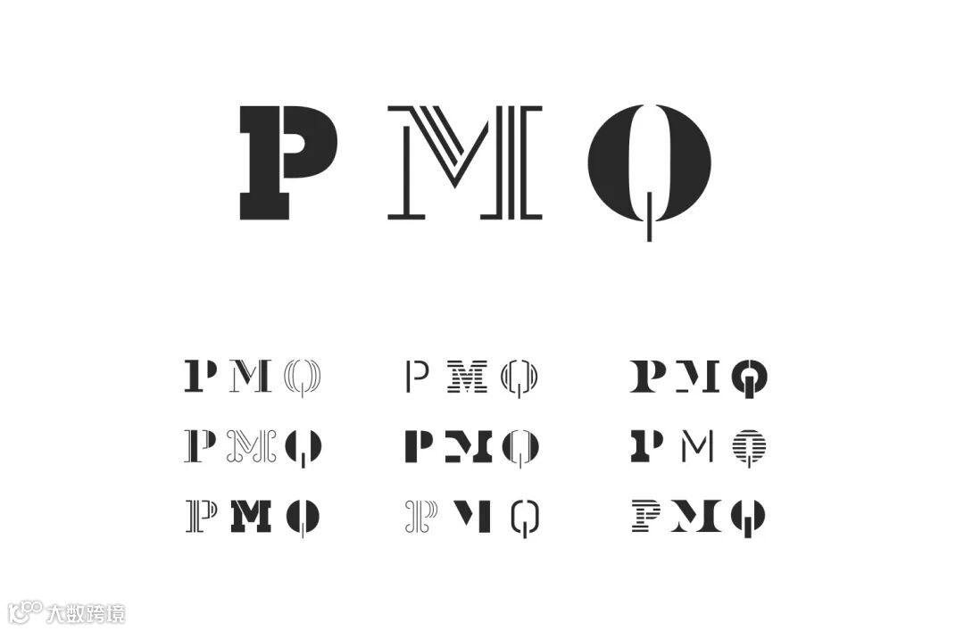 圖 | PMQ的標誌系統為十組不同風格的英文大寫字母組成的不同組合。