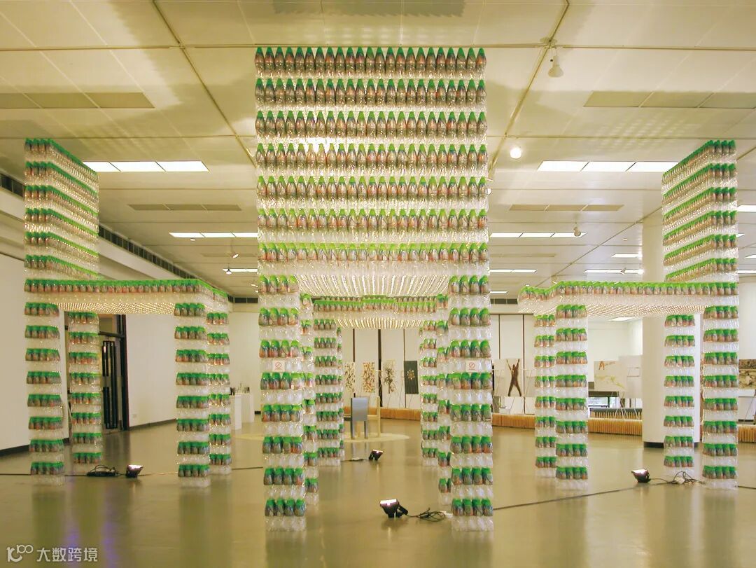 圖 | 劉小康於2003年的個展中,運用了7000多個水瓶組裝成的大型椅子裝置
