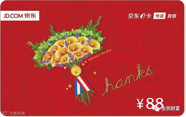 常规声明:本活动属于全民财富自主发起的活动,并没有和京东有任何合作协议。“京东E卡-电子卡”作为本次活动奖励,属于全民财富自主采购行为,图片仅作为效果展示,实际奖励将以短信的形式发放至用户手机号。