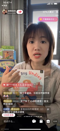 圖 | 博主香蕉媽媽在小紅書直播帶貨,推介中商童書