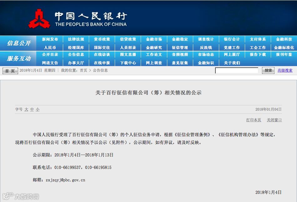 4、【中国“信联”横空出世!瞄准近几亿征信空白人群】1月4日,人民银行官网消息,中国人民银行受理了百行征信有限公司(筹)的个人征信业务申请,并进行公示。“信联”由央行主导、中国互金协会出面牵头;中国互金协会占股35%,并邀请芝麻信用、腾讯征信、深圳前海征信、鹏元征信、中诚信征信、中智诚征信、考拉征信、北京华道征信各出资8%筹建。注册地为广东省深圳市,注册资本10亿。(华夏时报)