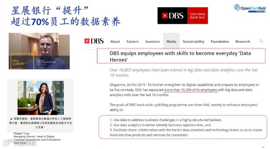 數據是客戶的聲音,企業的每位員工都需要成為數據公民,才可以促成企業為數據驅動型企業。湛博士列舉Airbnb通過培養每位員工民主化數據素養,讓數據成為員工的第二商業語言;CITI讓一些銀行從業人員逐步開始運用數據科學知識;星展銀行提升超過70%員工的培養數據素養,公司每位員工都成為數據公民,數據文化融入在整個組織中。湛博士提到,要將企業轉型為數位驅動的企業,是許多公司領導人的追求,而其中最艱巨的挑戰不是技術,而是公司整體的文化。