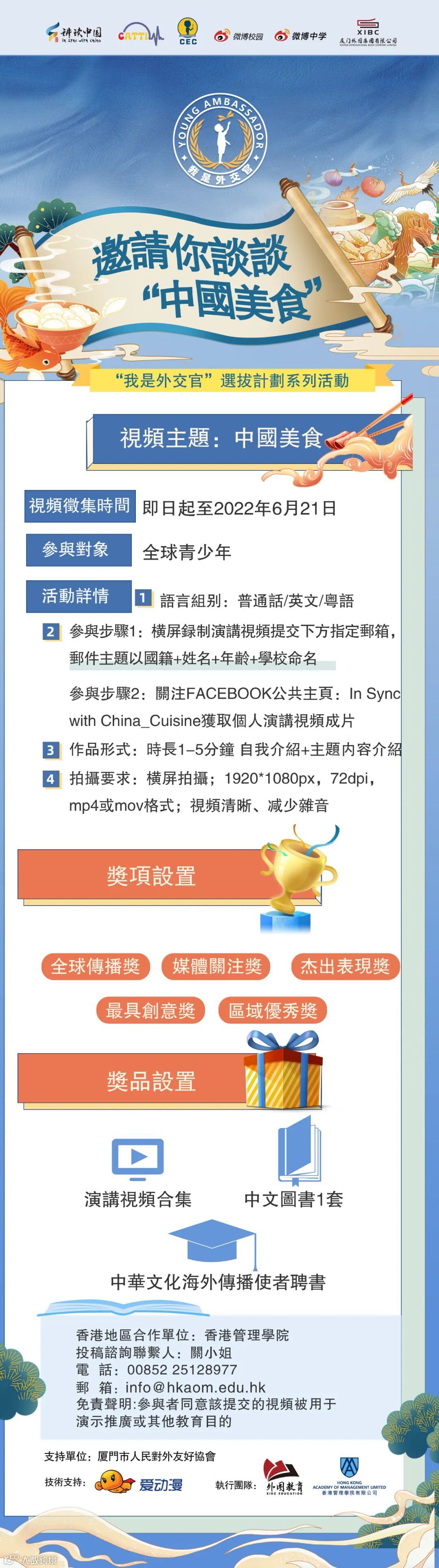 歡迎各位在香港的小朋友們積極參加,展現自己熱愛美食與文化的一面!詳情請看下圖海報。