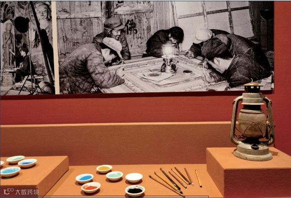 圖 | 20世紀50年代敦煌文物研究所美術專業人員在油燈下臨摹壁畫