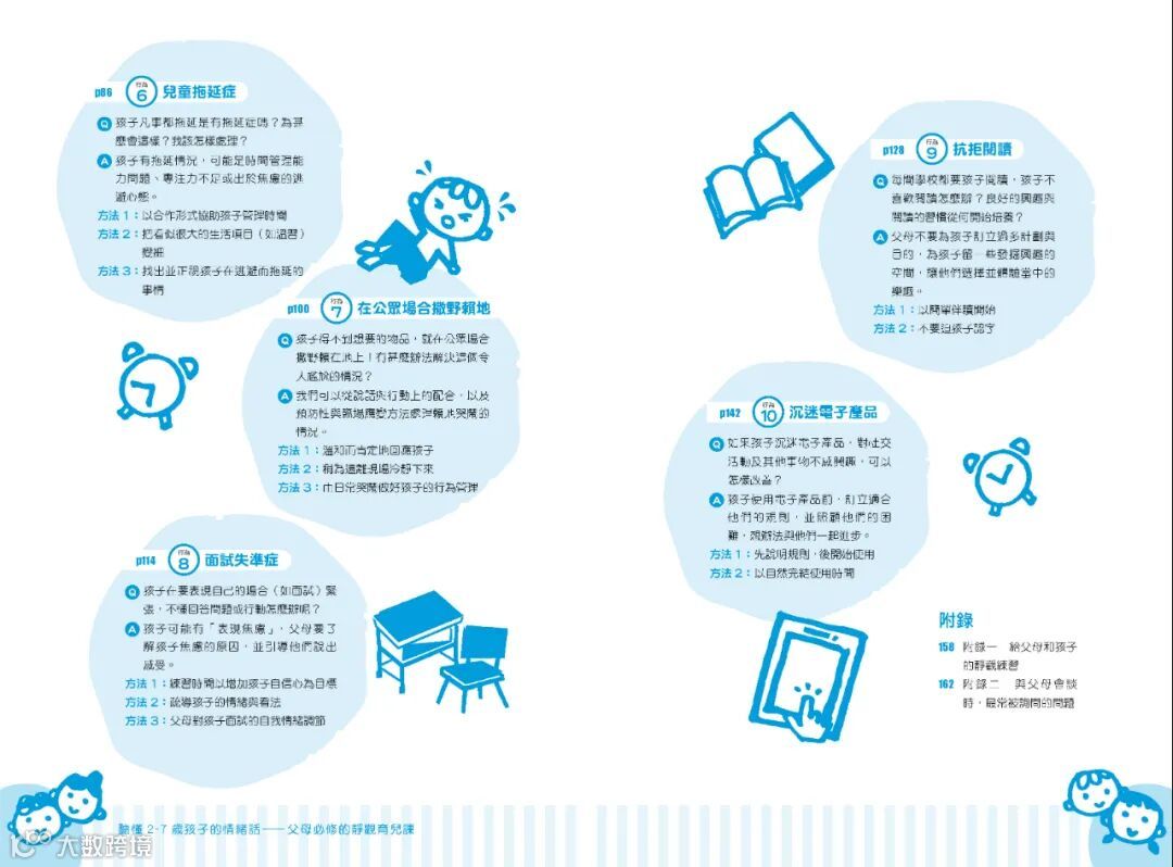 孩子為甚麼常常在玩遊戲時發脾氣?獨生的孩子很霸道,不願分享怎麼辦?孩子不肯離開玩具店在街上哭鬧怎處理?為甚麼孩子做功課不合作,凡事拖延着不肯做?怎樣令孩子戒除沉迷玩電子產品的習慣?