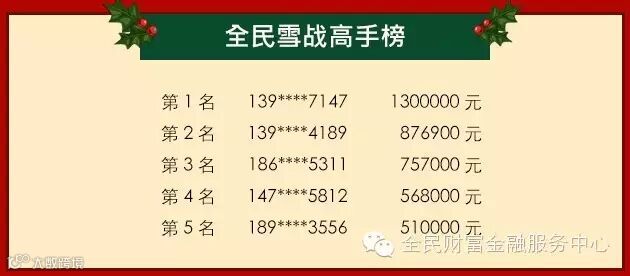 全总在此恭贺雪橇飞鹿队全体队员和全民雪战中脱颖而出的高手们,也祝所有全民财富用户理财愉快~