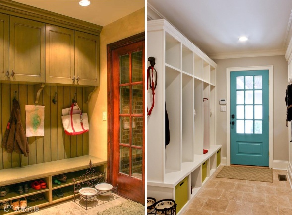 3、玄关的收纳柜可以采用嵌入式的安装方法,一方面能节省空间,另一方面就是整体性的设计看上去更加的干净整洁。