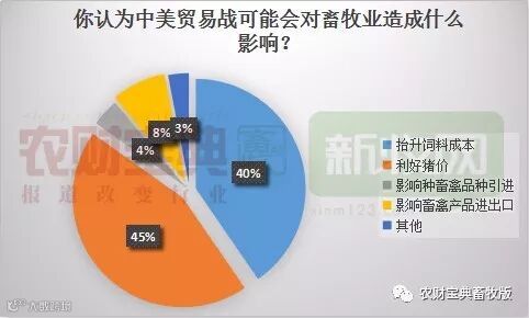 根据《农财宝典》新牧网微调研,45%的人认为加征25%的关税利好猪价,另外大约40%的被调研者认为会抬升饲料价格。