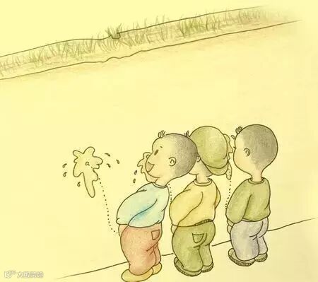 男孩子站成一排,看谁尿得更远。