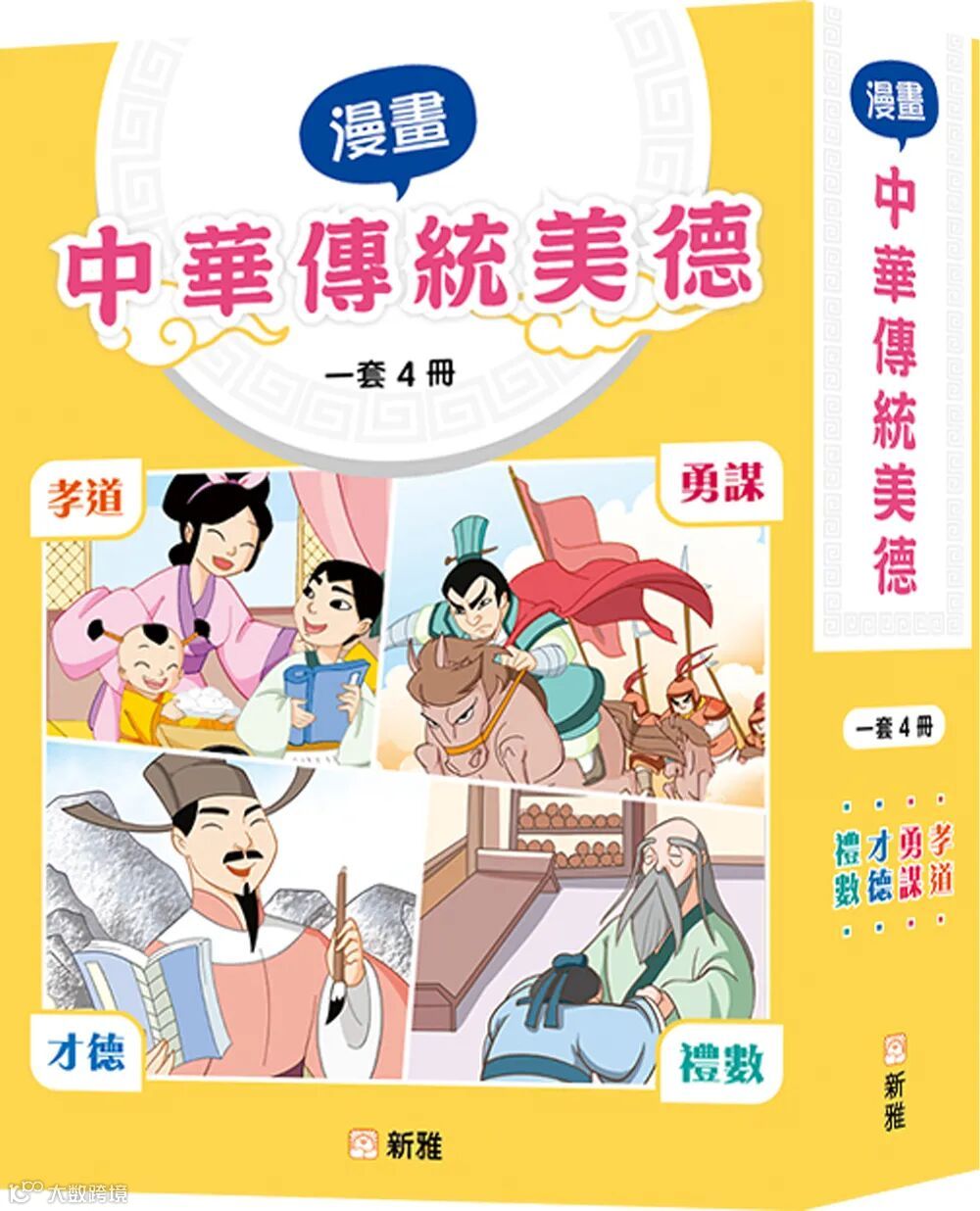 《漫畫中華傳統美德》系列共4冊,從多層面,多角度精選中國古代關於孝道、勇謀、才德、禮數的故事,通過生動有趣的漫畫,將博大精深的中華文化融入絢麗多彩的畫面中,讓孩子輕鬆閱讀,從中培養孝順父母、堅毅不屈、勤勉自勵、以禮待人的美德。書中附有「文化小錦囊」,有助孩子認識更多中華文化知識,學習良好品行!