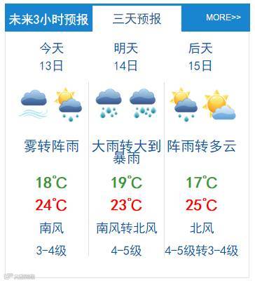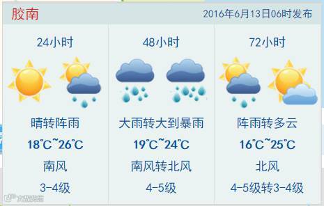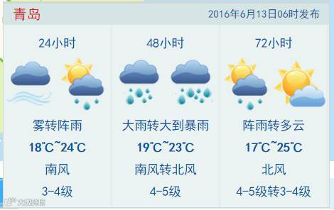 据市气象台预报,14日青岛大部分地区有中到大雨并伴有雷电,局部或有大到暴雨,小冰粒来袭。南风转北风陆地4-5级阵风7级,海上6-7级阵风8级。