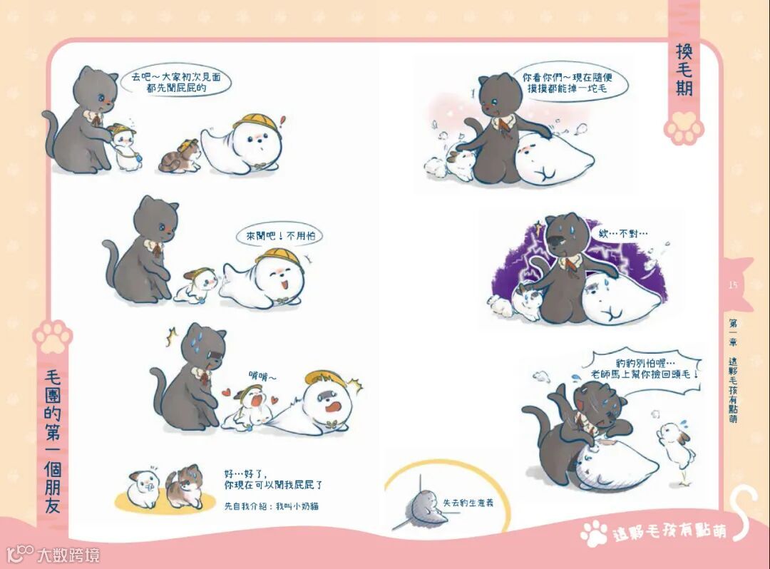 由萬里機構出版的《這夥毛孩有點萌》正是IG繪畫帳號的延伸,是一本溫暖人心的療癒繪本。桔梗將IG中「桔梗與毛孩們」的小故事、角色,串聯在一起,以可愛畫風呈現各種動物師生角色的性格和故事,一班毛孩們在故事中互動、玩樂,成長,不論男女老幼,一篇篇短篇漫畫道盡這班毛孩們的賣萌日常。