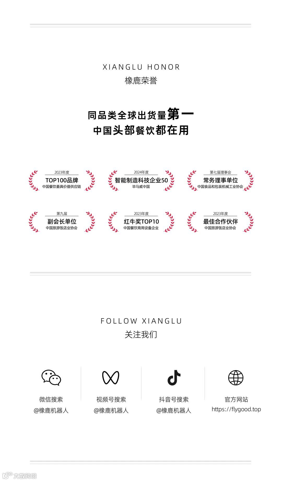 橡鹿机器人产品已广泛应用于餐饮、酒店、企业、学校、政府等场景,累计服务超过1700个品牌,落地超6000家门店,服务人次突破1.8亿,为全球出货量最大的AI炒菜机器人公司。