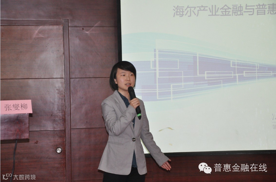 海尔融资租赁总监张燮柳、高级经理王泳鑫共同以《融资租赁业务及与普惠合作》为题进行培训及合作讲解。