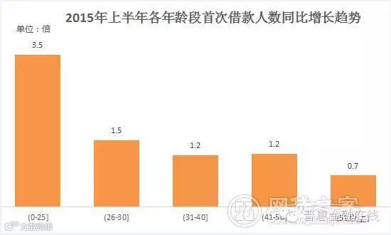 (2015年上半年拍拍贷平台各年龄段新增成功借款用户同比增长)