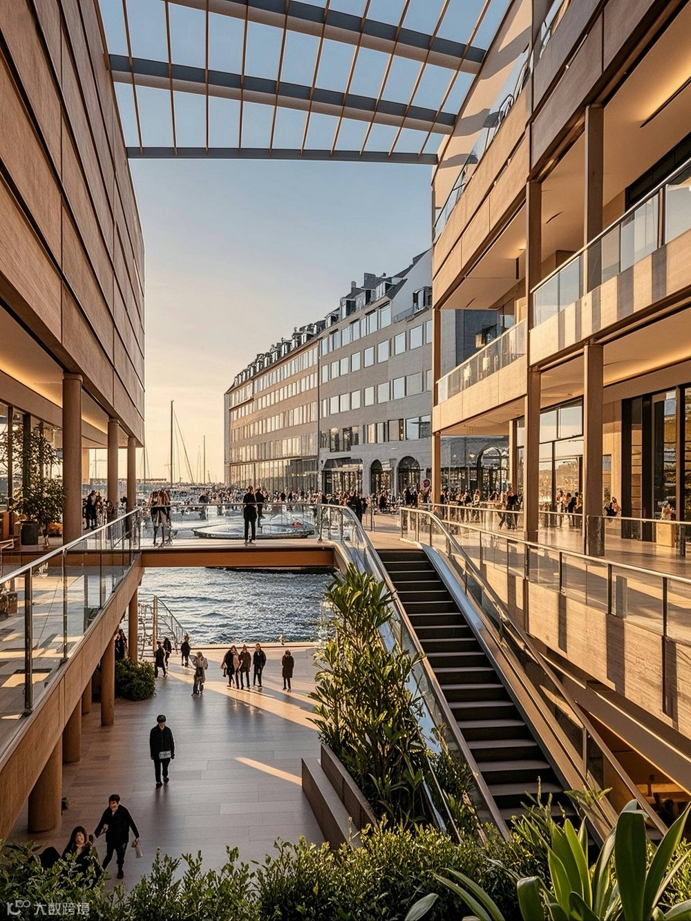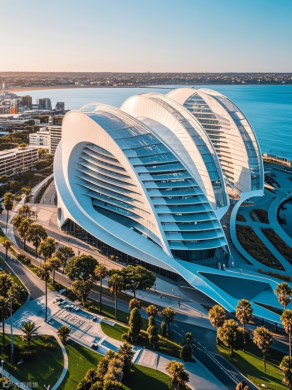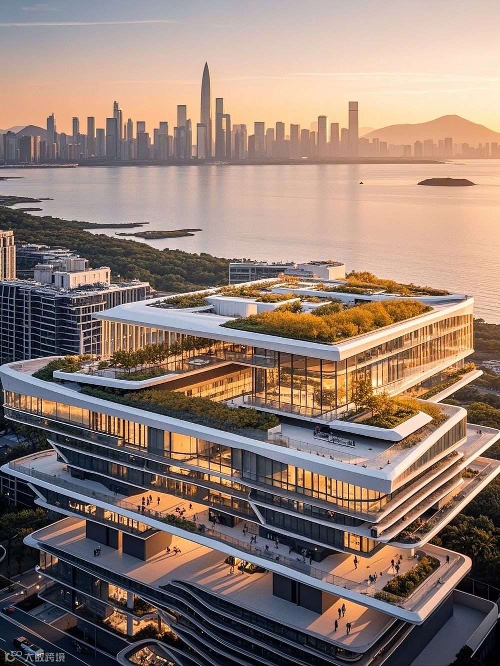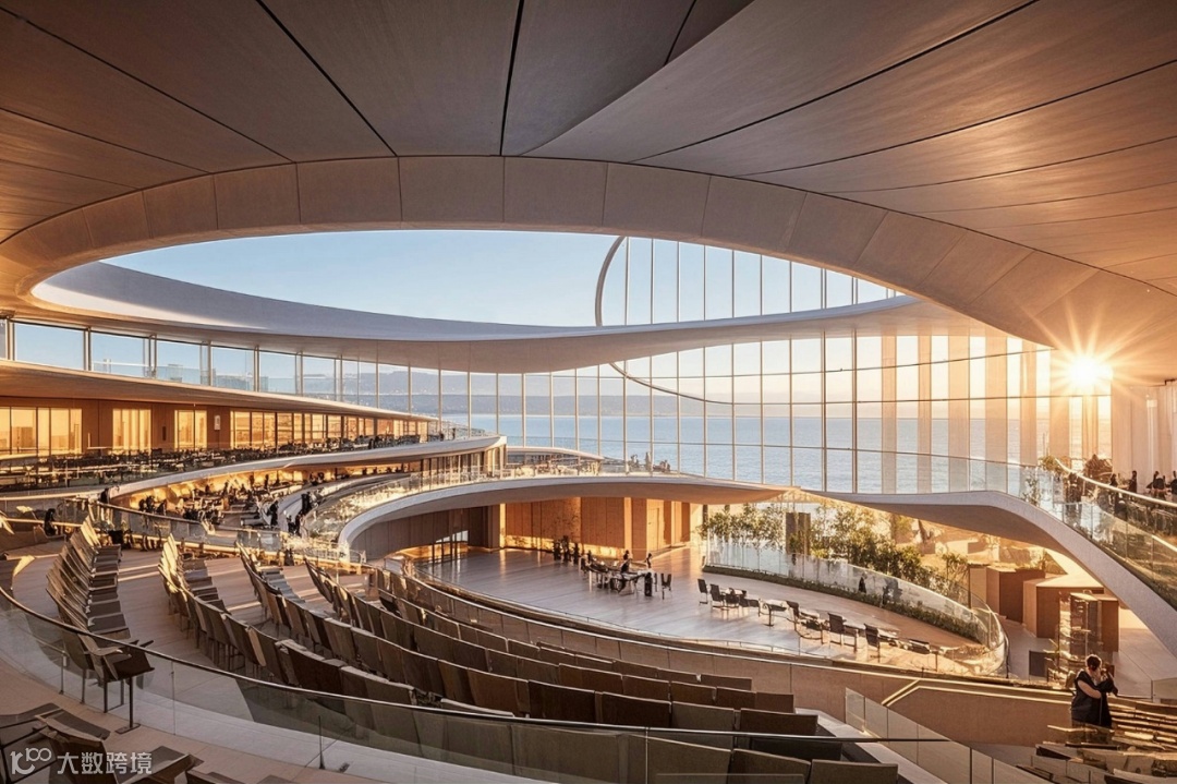 作为海滨城市,建筑与景观的融合是设计的关键议题。AI助力下的建筑设计,在底层与裙房部分创造了丰富的灰空间。这些空间通过大跨度的悬挑与通透的玻璃界面,模糊建筑与外部景观的边界。滨水建筑的底层架空区域,不仅为市民提供了亲海的公共活动场地,还通过生态设计手法,引入潮汐景观与湿地植物,构建起城市与海洋生态的过渡带。