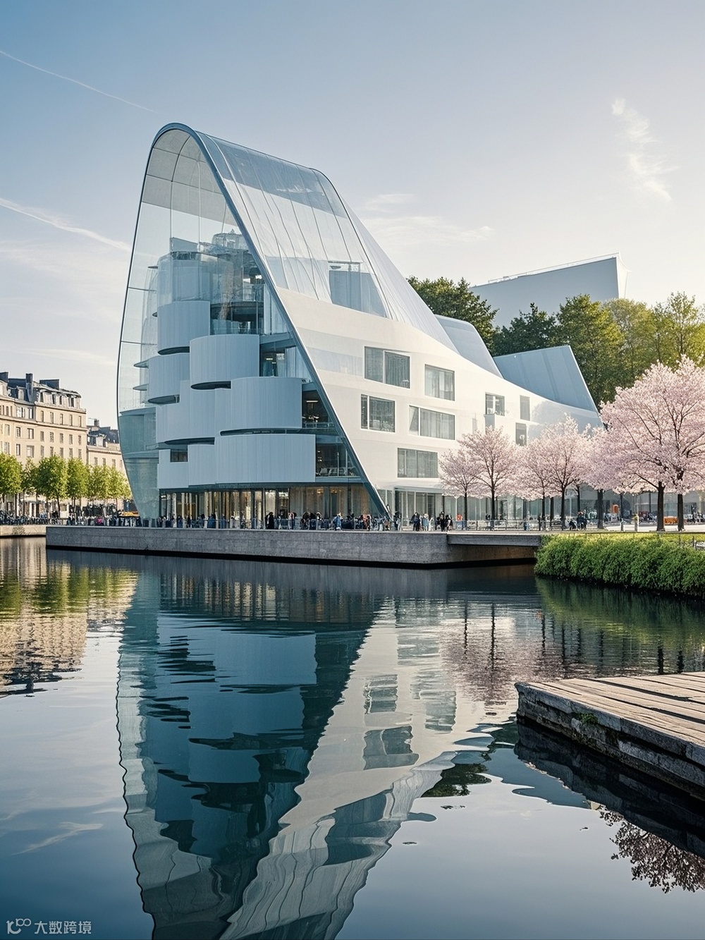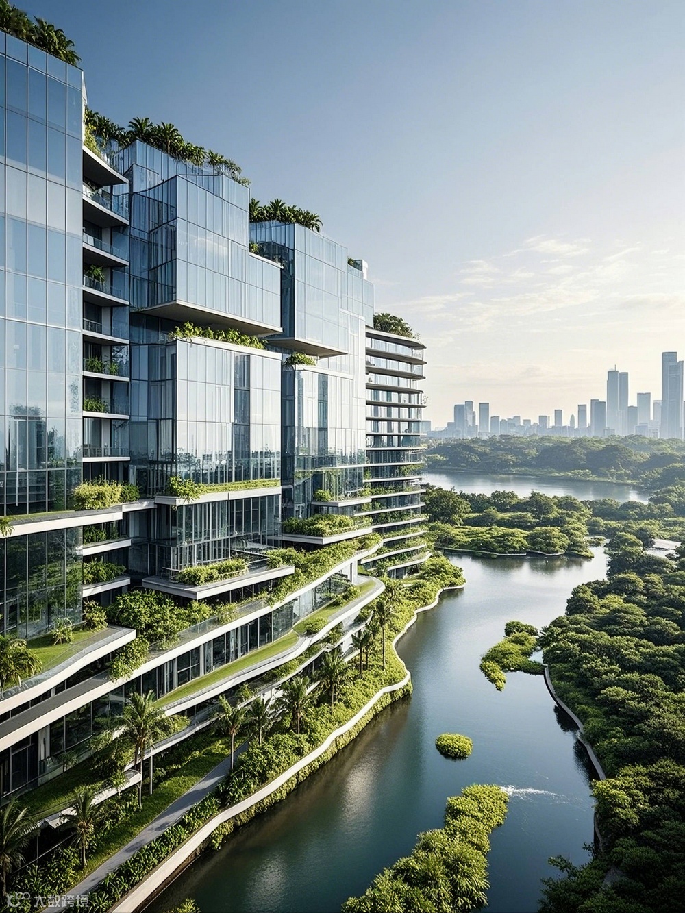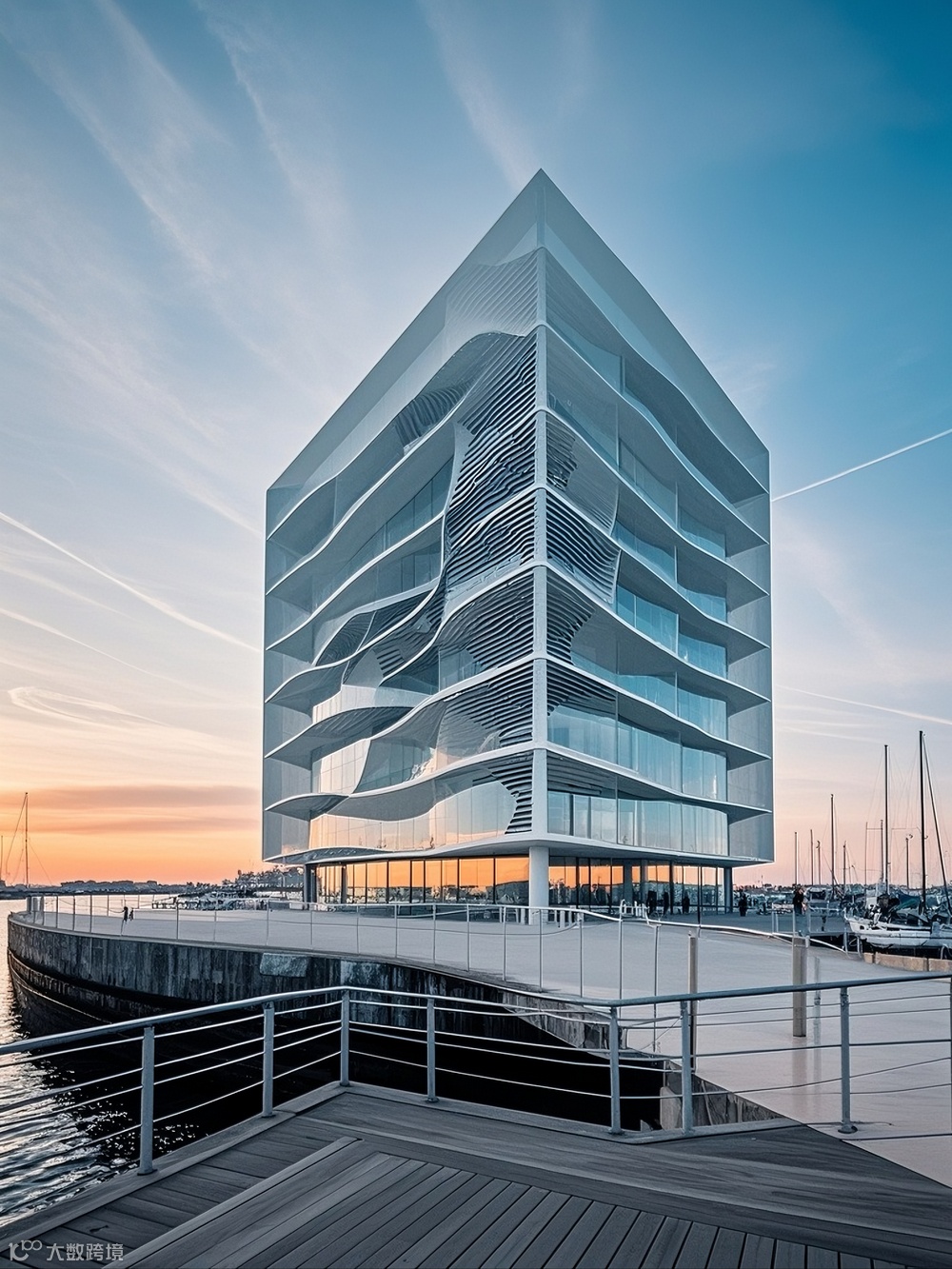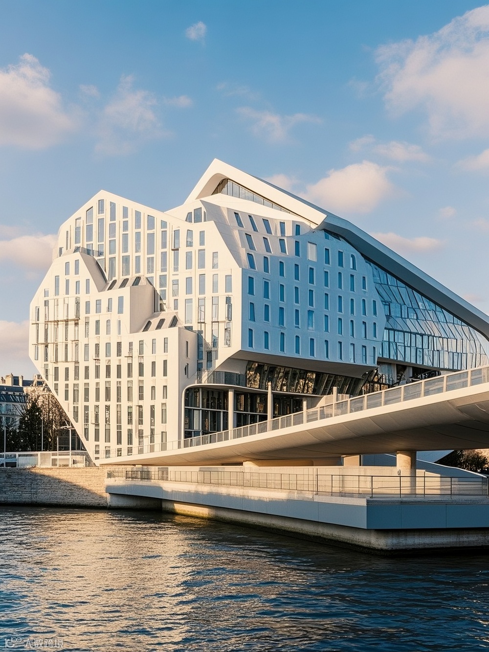 作为海滨城市,建筑与景观的融合是设计的关键议题。AI助力下的建筑设计,在底层与裙房部分创造了丰富的灰空间。这些空间通过大跨度的悬挑与通透的玻璃界面,模糊建筑与外部景观的边界。滨水建筑的底层架空区域,不仅为市民提供了亲海的公共活动场地,还通过生态设计手法,引入潮汐景观与湿地植物,构建起城市与海洋生态的过渡带。