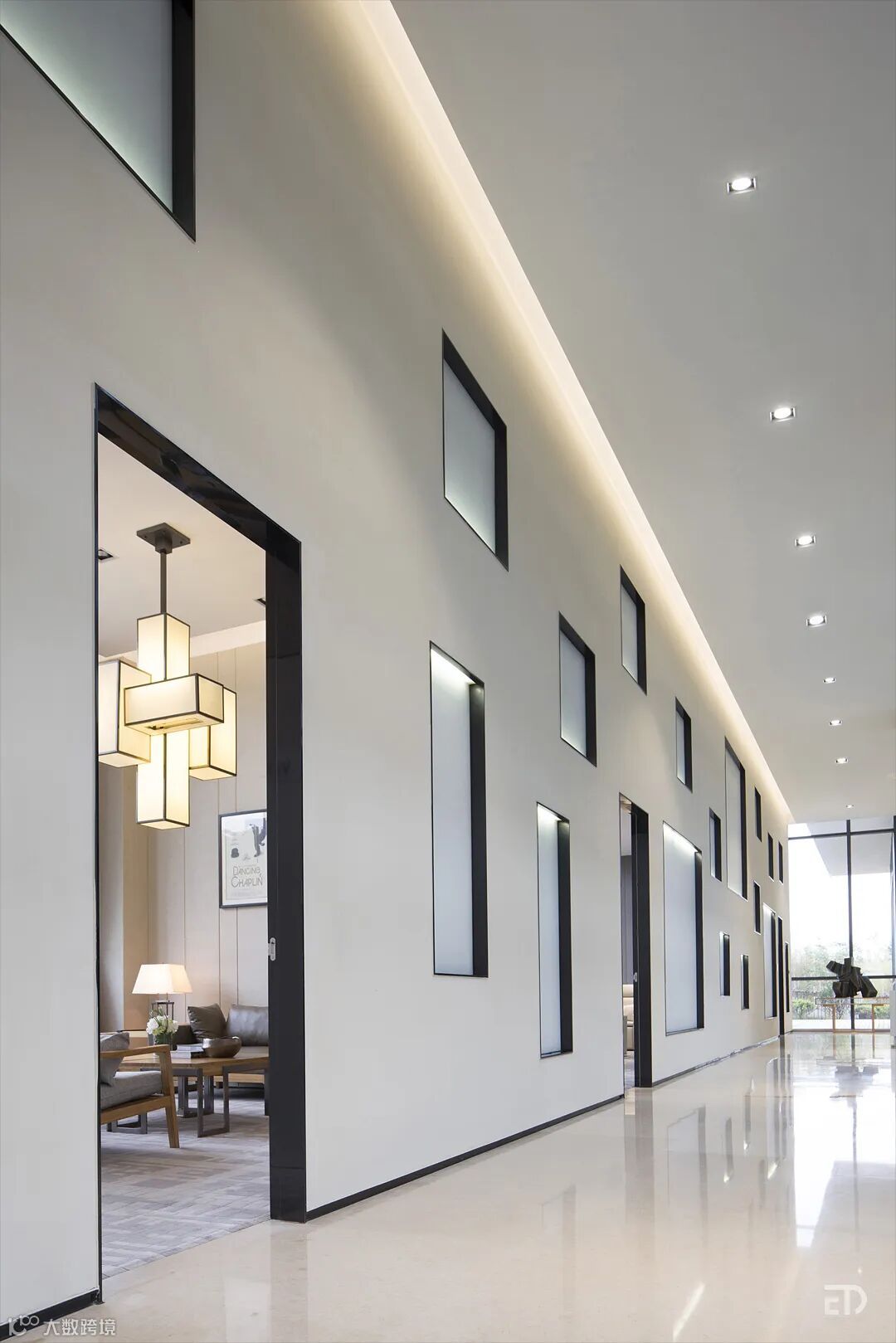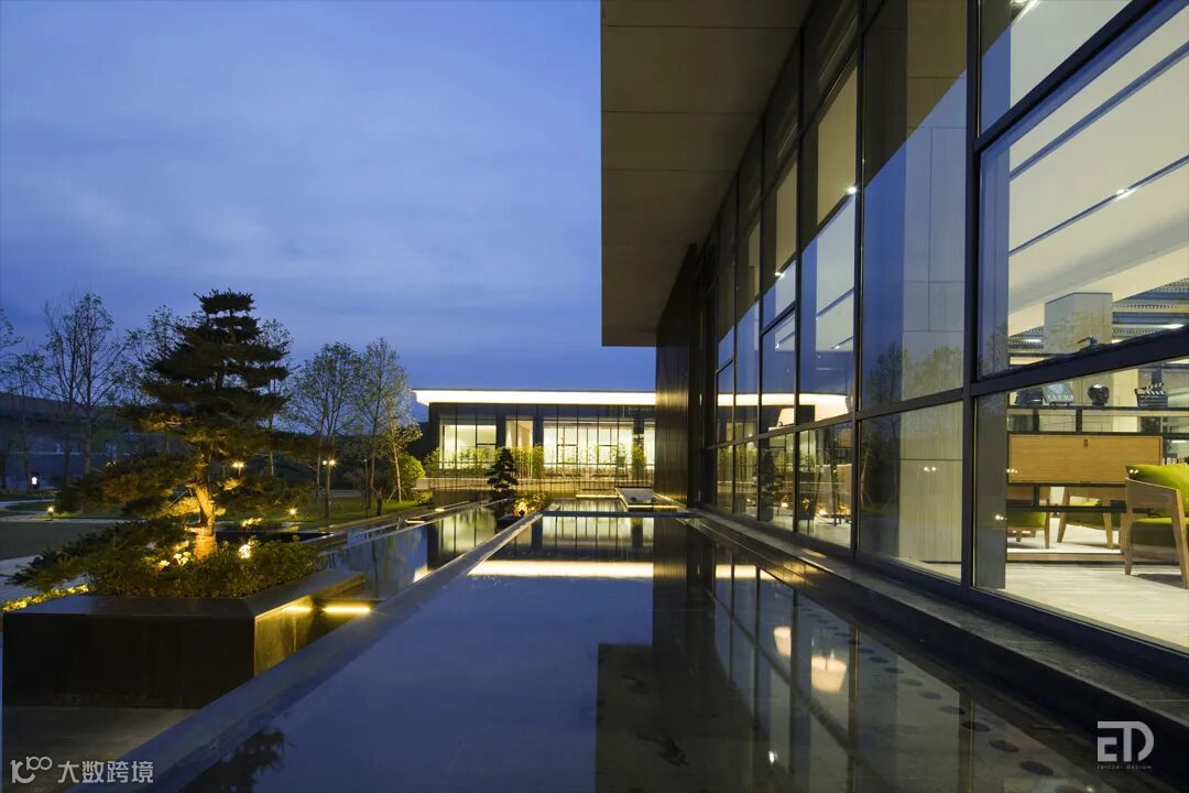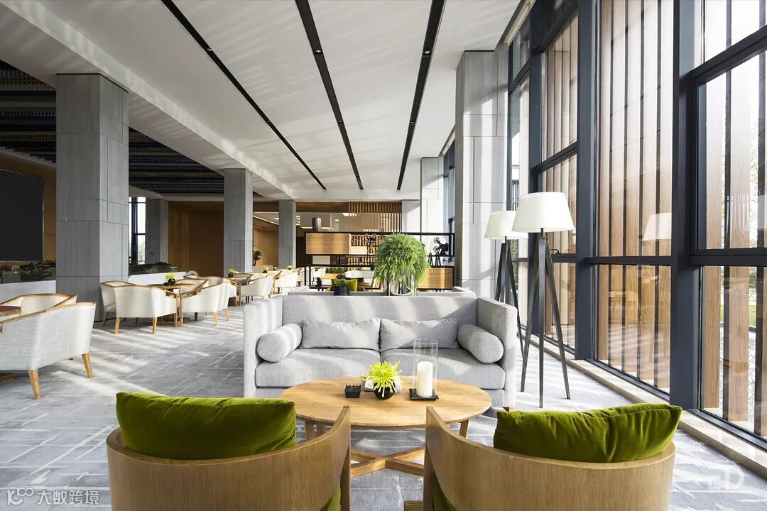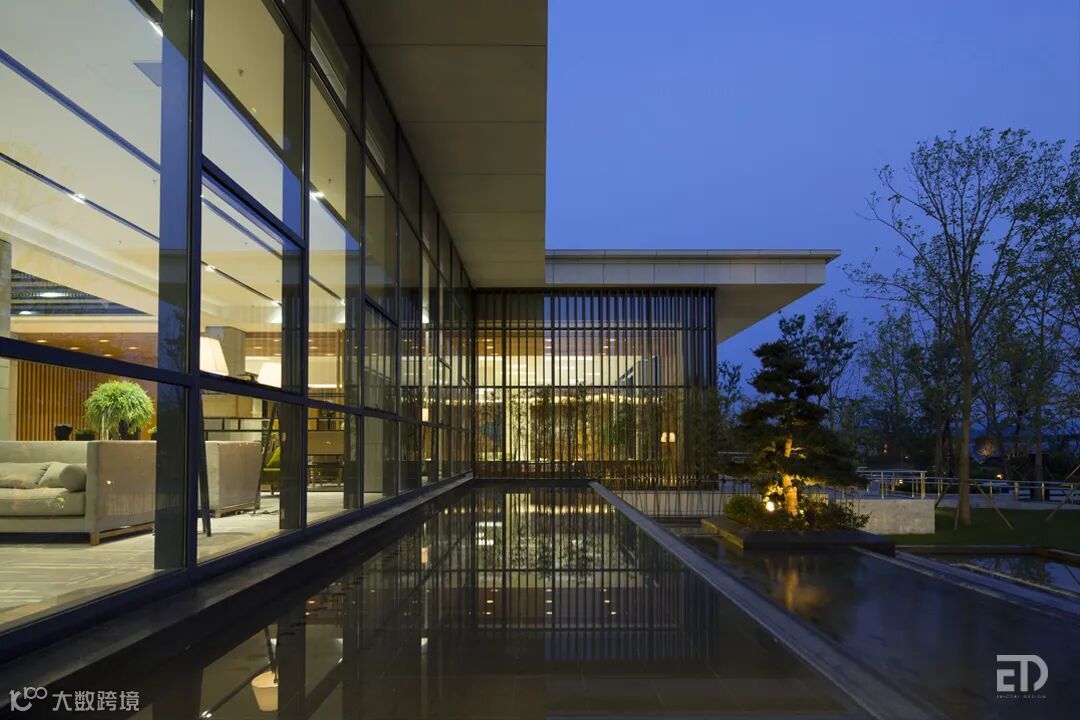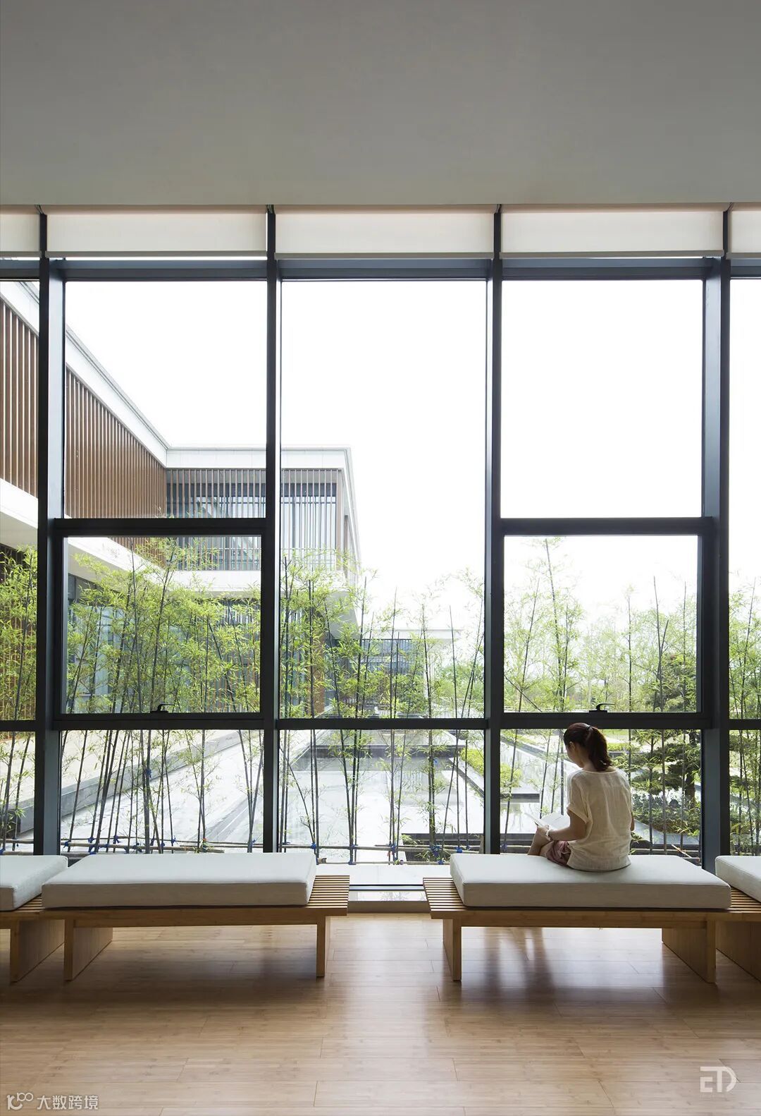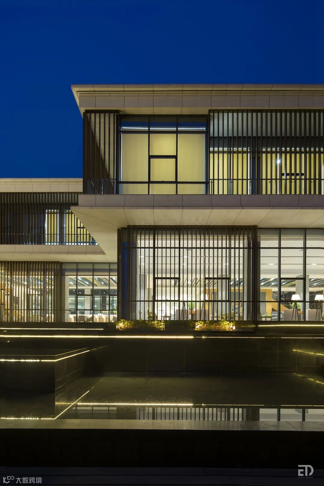 在这个直线循环的空间里,人们很容易就领会到“ 城市 • 自然 ”的设计主题。细密的直线运用了木头和钢板两种材质来表达同一种设计语言,几何造型几乎是纯粹的,同一指向正方形和长方形,反映出设计师对现代空间的自然理念:优雅的格调、方正的品质。落地玻璃窗将户外的自然风景完整引入室内,但设计师在部分透明的空间中运用了直线屏风提升了它的遮掩度,创造出一种可见与不可见、开放与含蓄、优雅与质朴、坚硬与细薄、独特与实用相互融合的城市 • 自然空间特点。同时将地域人文特色引入设计,项目所用饰面板、地板、家具皆为竹饰面,天然纹理,清新文雅。