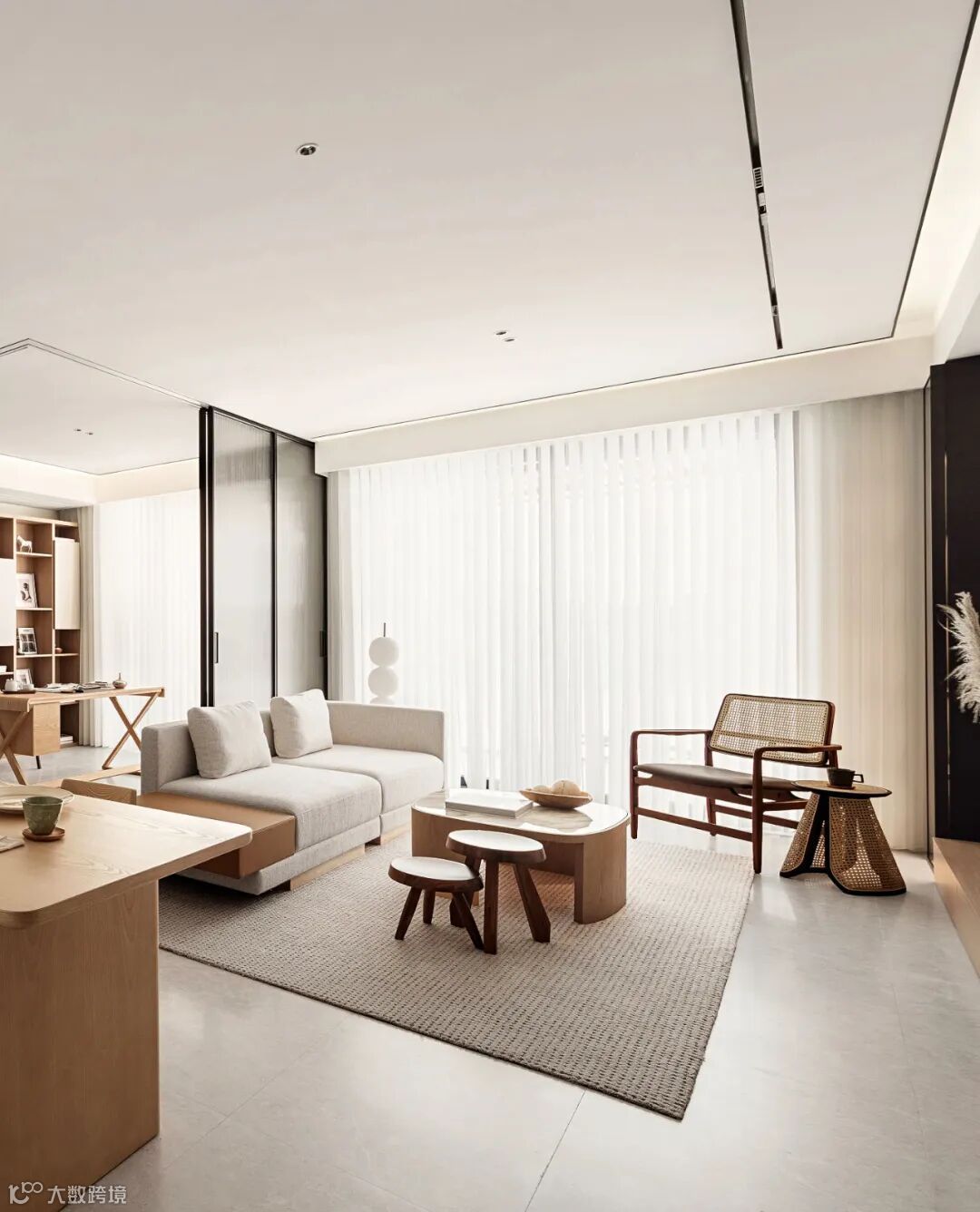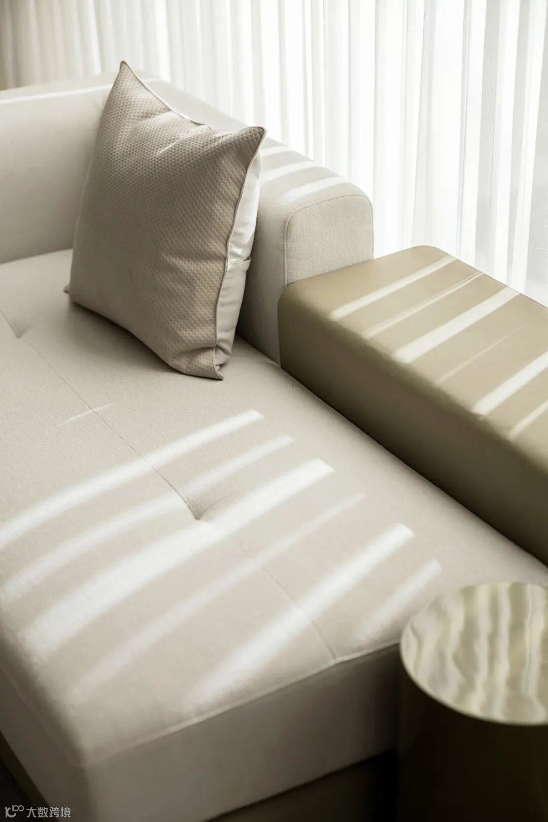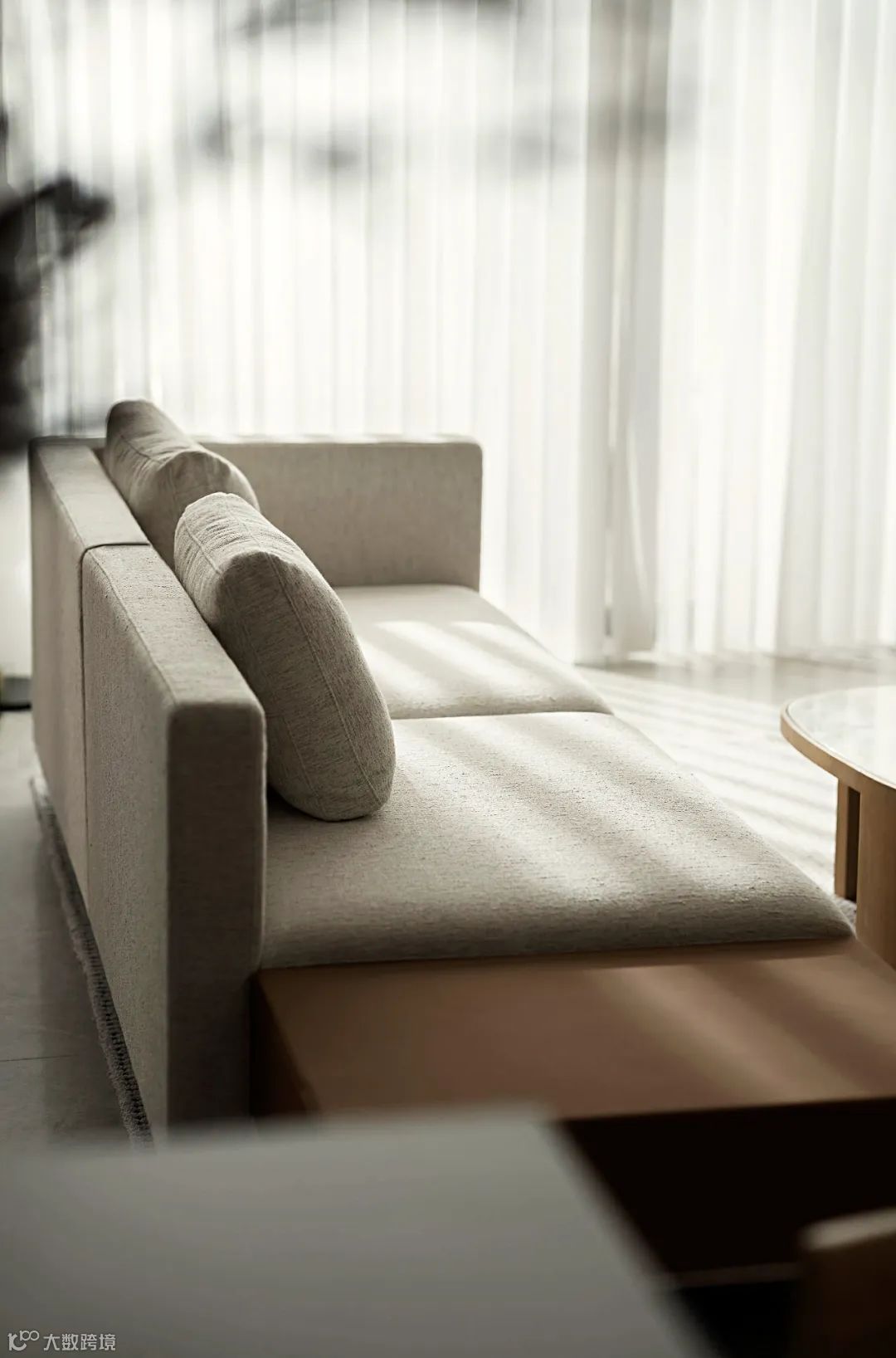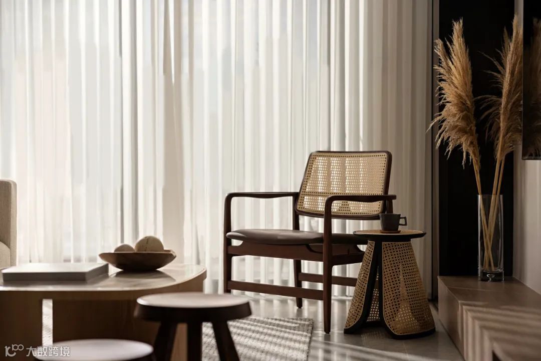 母户是长辈的居住空间,空间陈设呈现出返璞归真的简素之美。光线从白色梦幻帘穿透到室内,温暖质朴、舒适淡然的氛围弥漫着整个空间。