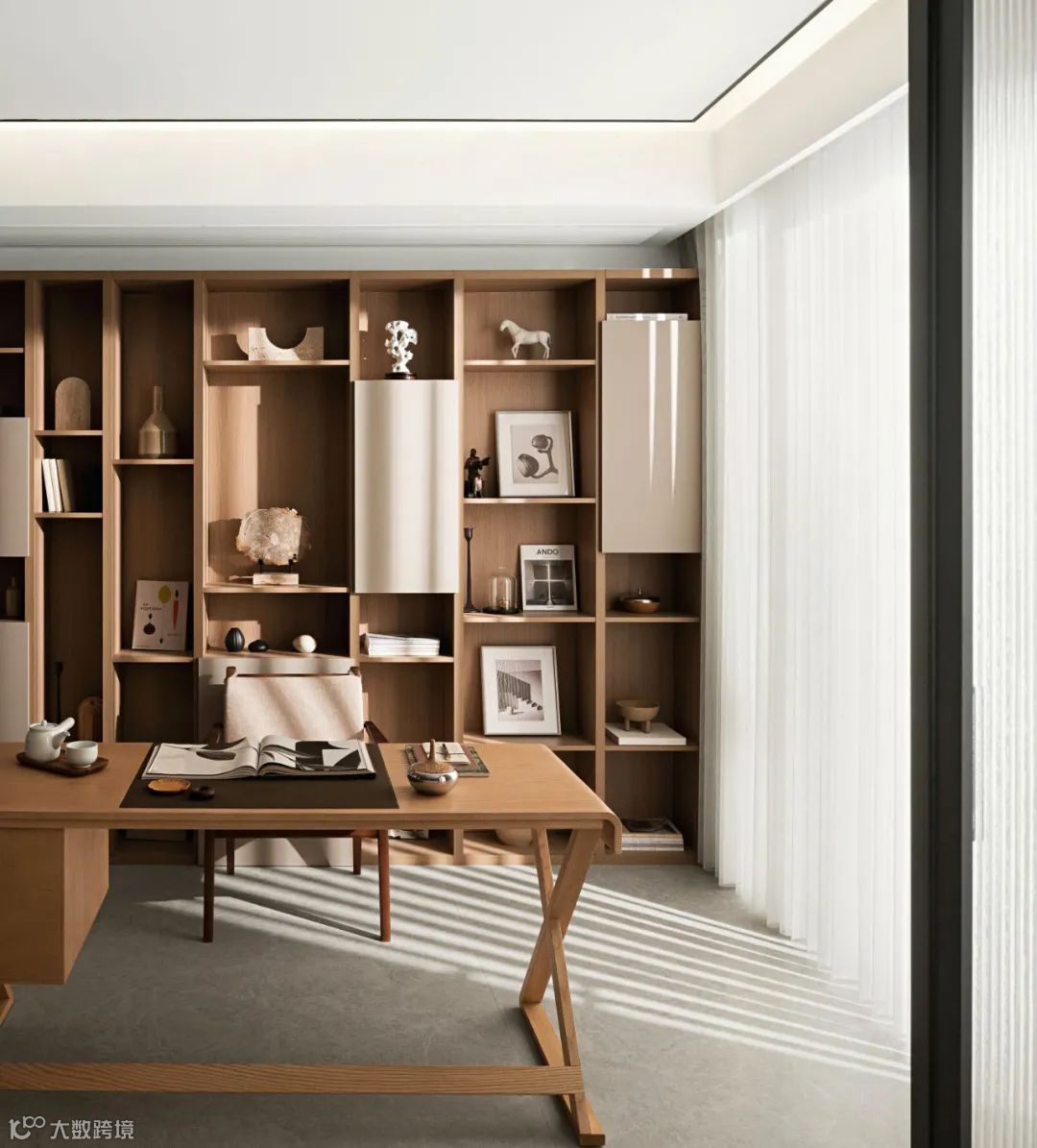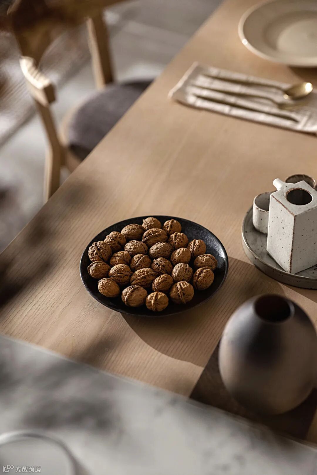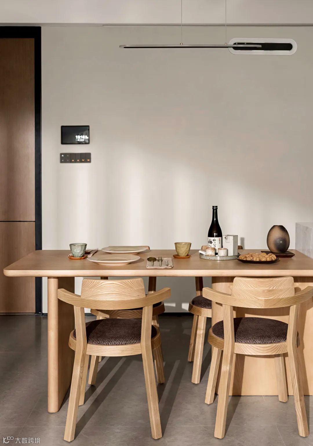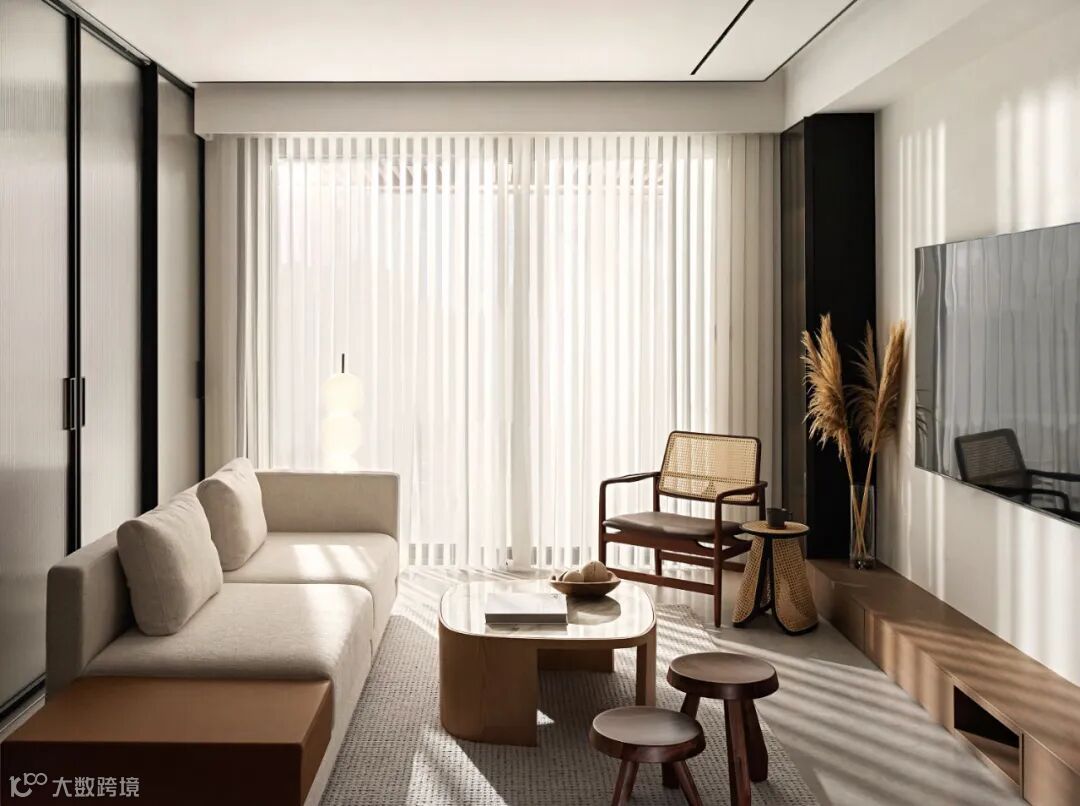 母户是长辈的居住空间,空间陈设呈现出返璞归真的简素之美。光线从白色梦幻帘穿透到室内,温暖质朴、舒适淡然的氛围弥漫着整个空间。